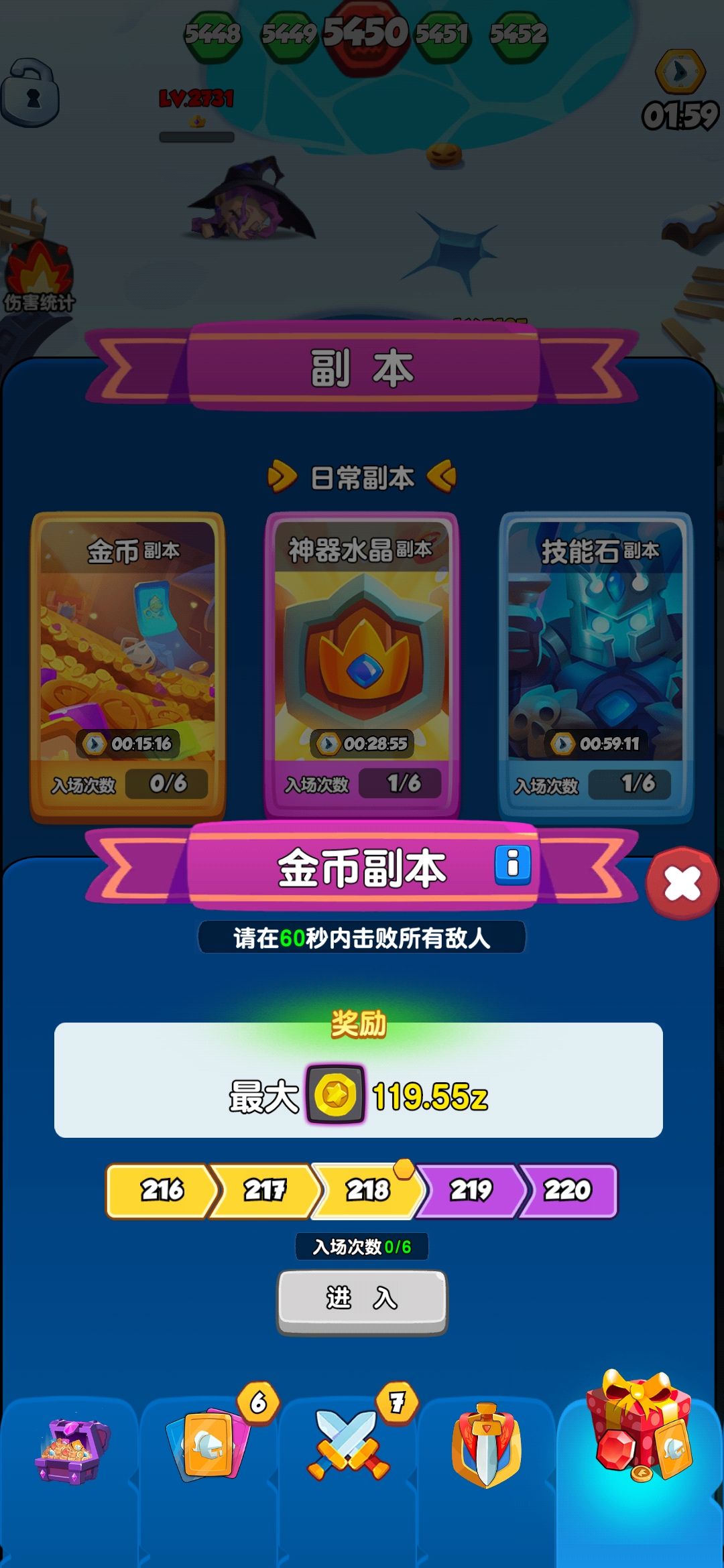 5.11玩游戏像坐牢,每天接近24h在线了,睡觉用手机挂,醒了电脑挂睡觉挂是最痛苦的,一觉醒来发现副本被推了好几层,我昨天140层封顶,睡醒变成144了,搞得我打最低的142都得刷脸过所以副本强度是不是有点离谱了,就金币稳过,技能石也是刚上去打不过推荐大家把神器全开离线的,直接开摆分割线––––––––––––––6.9没更新什么,说降低副本难度了啥的,低等级副本有感觉到,高等级副本该刷脸还是刷脸,最大的问题是后期金币收益和升级所需的金币差太多