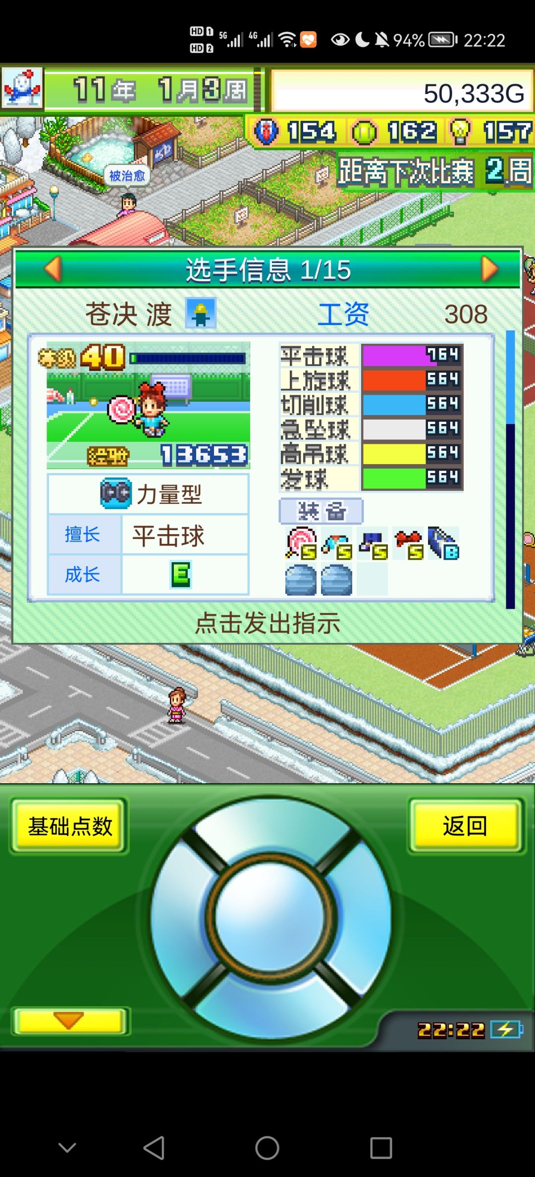 说回游戏,游戏本身真的挺肝,人物属性要肝,人物等级要肝,赞助商好感度要肝,金钱等资源也要肝,确实是我玩过的几个开罗游戏里最肝之一了,并且这一作许多招募人员的属性应该也大多都是随机的,如果按照一些攻略上写的开局招“这个名字”的人比较好blablabla,那可能得sl好久。但因其这些众多特性,网球物语也是我开罗游戏中最喜欢之一,真的很有趣,看自己创建的主角各种失误出界高血压、0比40的后来居上、站在网前的暴扣扣杀确实很过瘾,大力出奇迹,疯狂堆力量,不需要超级巨星同样能过开罗姬。