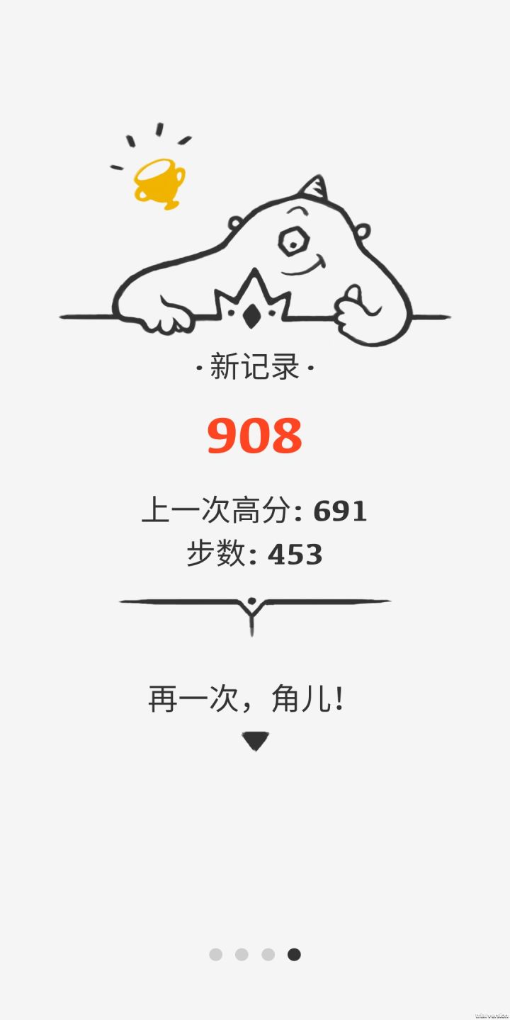 玩家获得的分数除了用来突破自己的排行榜,在局内也有不小的用处。当到达一定分数(其实我也不清楚是多少),将会获得回溯一次的功能,会有较浅色的小圆圈在上一格提示可回溯,在成功消除后会暂时消失,到下一次没有消除的滑动时再次出现,其实就算用了也会很快再攒一个,可以放心使用,但是要注意只能攒一个哦!在独角怪眼睛周围有一个紫色的环形进度条,在消除后会增加,慢了就可以获得一次跳过色块得机会,点击眼睛的数字就可以使用,可以跳过眼睛上那一个将要放置的色块,这个和回溯不一样,它是可以积攒的,没集满一次进度将会在眼睛处的数字加一,单回合也可以多次使用,在恰当的时机使用就是一个很好的续命神器。
