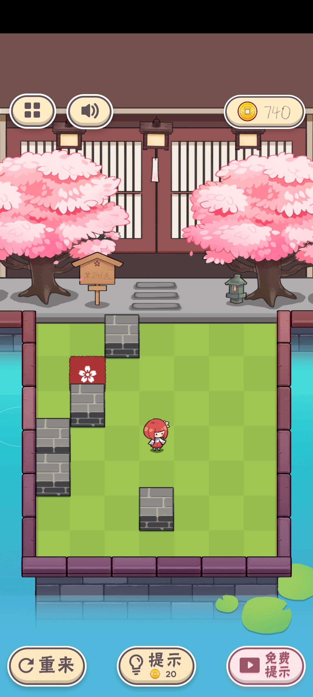 游戏是一个上手容易的小游戏,玩家只需要单手滑动操纵小女孩,在借助障碍物停止移动调整方向后,达到樱花图标所在处 即可通关。