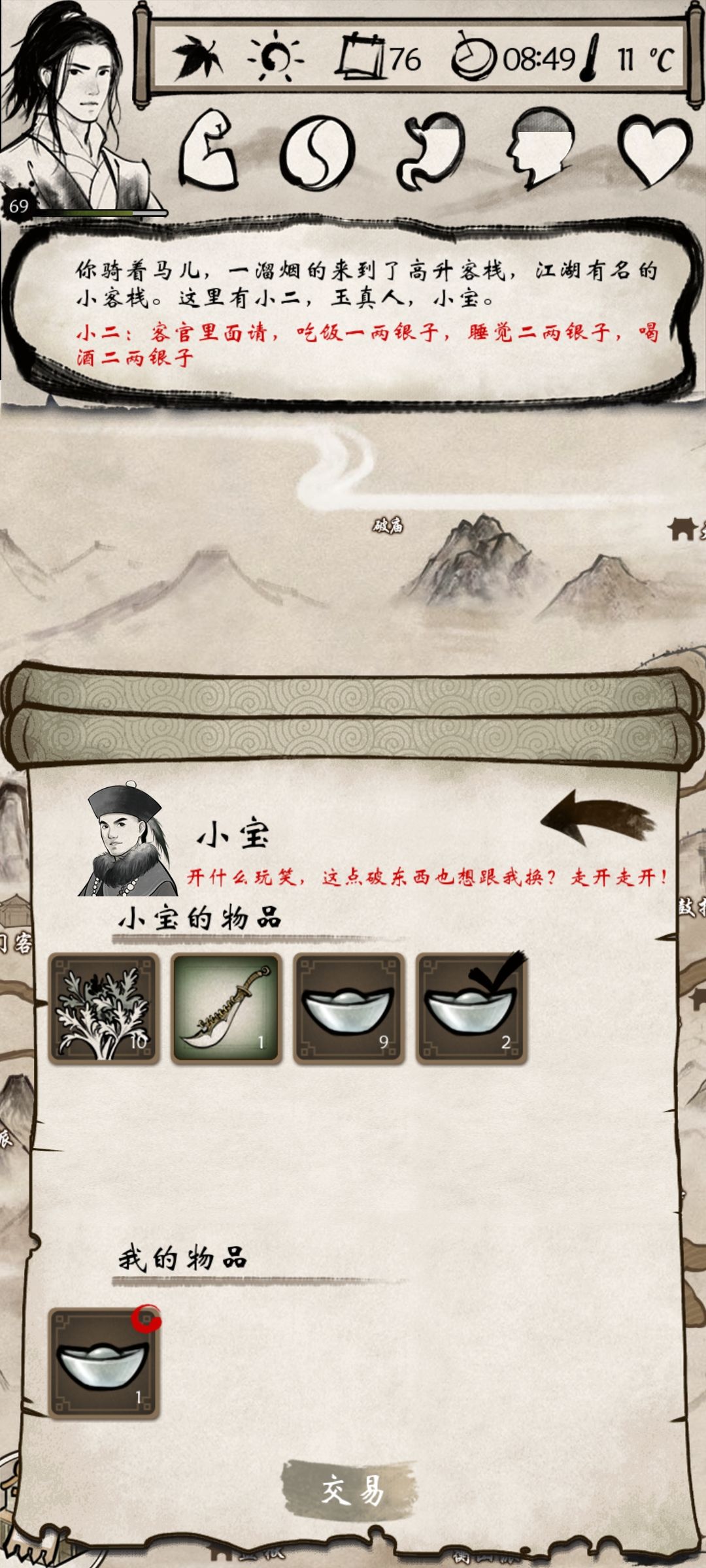 这给我整不会了,这比人只要银子,他的银子一个顶两好吧两个还换不了。你确定这个NPC不是来搞笑的吗?