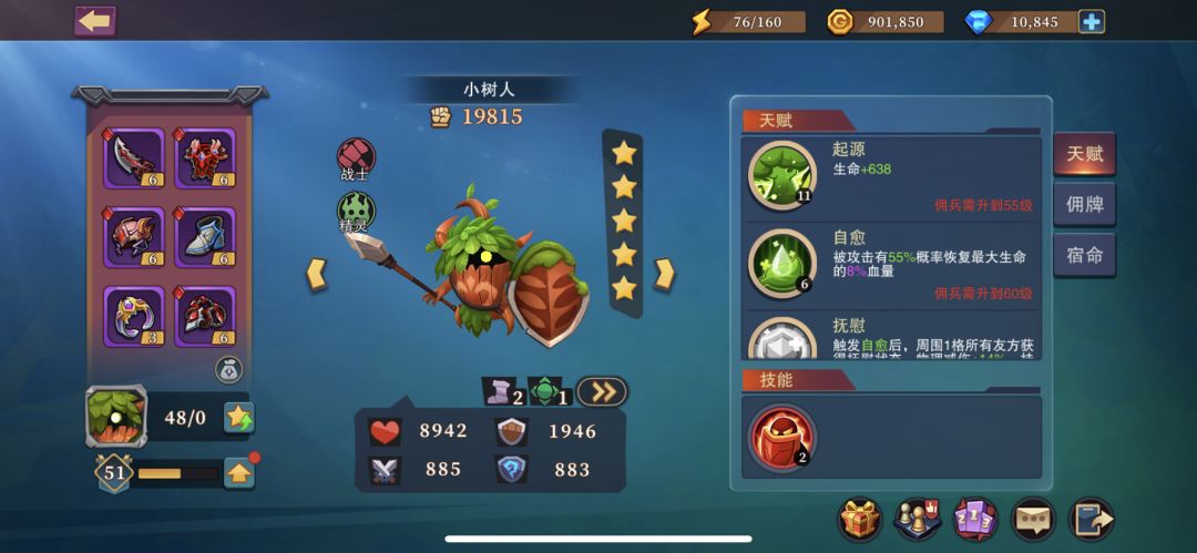 卡都是佣兵之旅里的酒店买,随件出。前期可以买小树人,能抗。