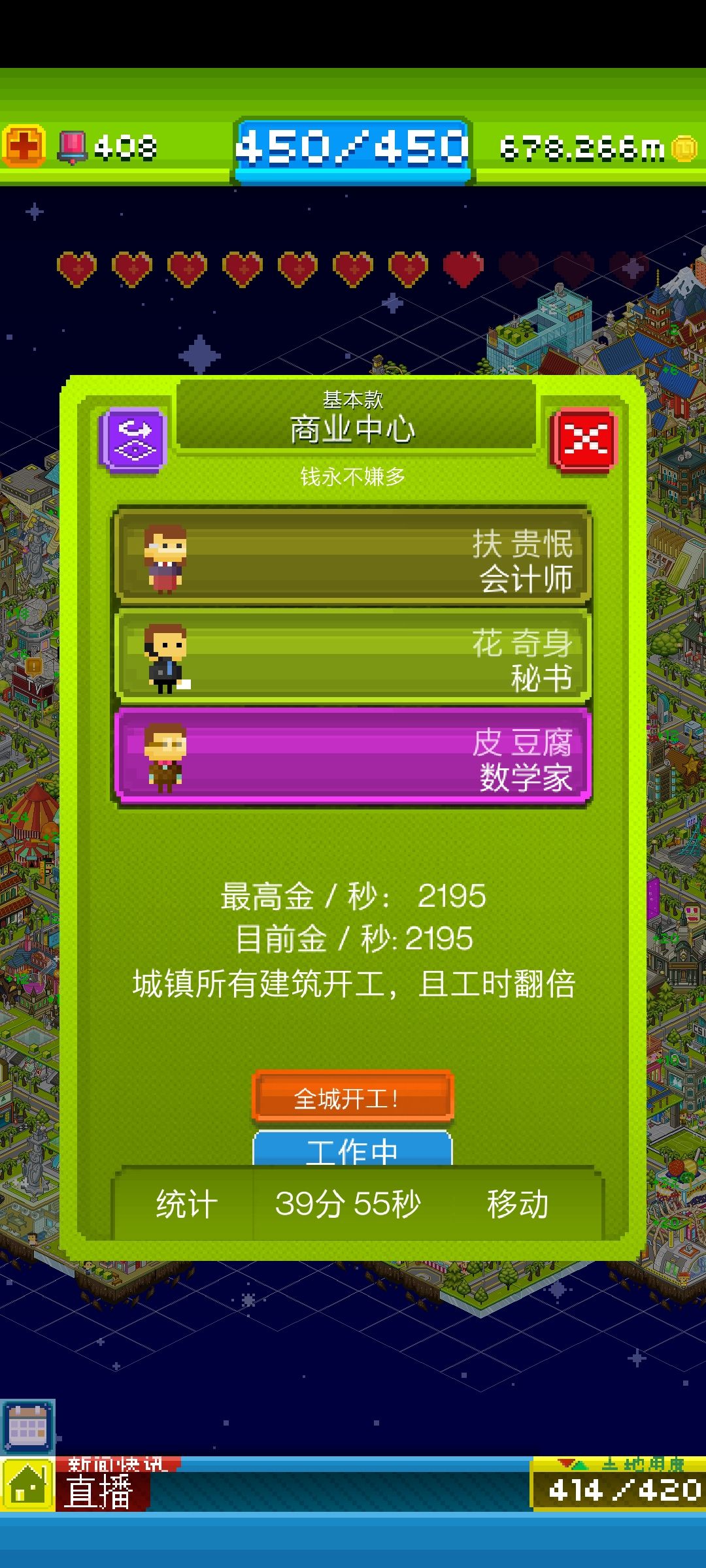 对了汇报一下进度:职业全解锁,金币2195个/秒,动物有51个配方没找到。