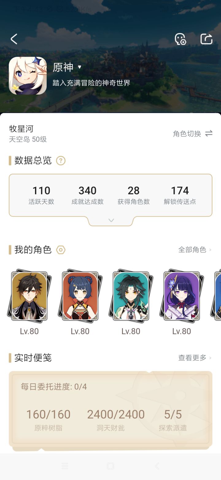 对了 体力没话完是因为最近处于长草弃坑的状态没登录游戏,角色等级不高是因为本来玩的就很佛系也不碰深渊,提前说好,省的又要解释。