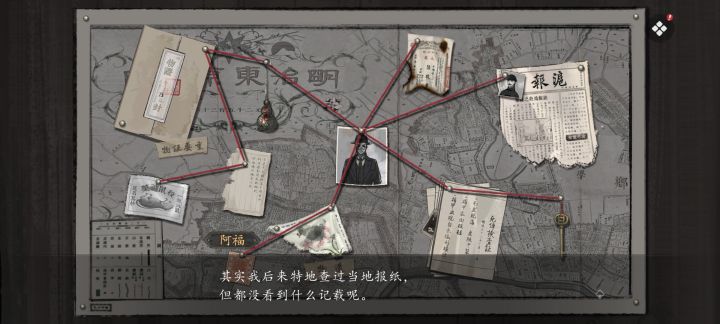 游戏的第一章就非常的出彩,但事实上这只是故事的开始。在第一个案子结案后,沈仲平哥哥的案子也被摆到了玩家的面前,并且给到了极高的难度,即[接触这个案件细节的人,包括沈仲平自己,不会超过五人]