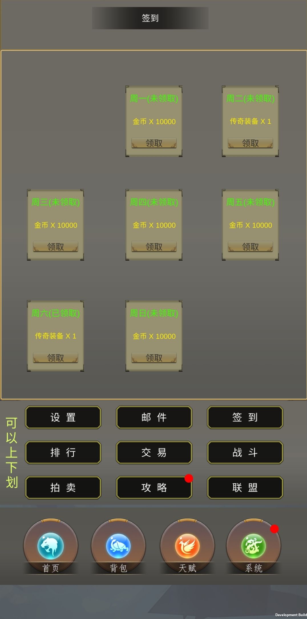 签到赠送装备,哪儿也没找到装备。