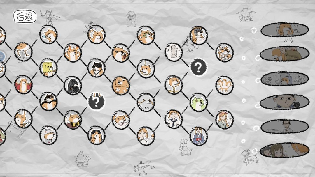 再说说沙雕狐狸的各种小表情动作解锁的反向推理速通,在图鉴可以直接查到打到的每一步,点击其实会有一行字形容小狐狸的状态,而每一根线都与你解锁或者未解锁的表情息息相关,可以抓住这个连锁反应,先解锁没有解锁的表情附近的表情,比如这是个比较摸鱼的路线,可以直接走社交或者躺平的行为去靠近,查看图鉴观察到已解锁的表情的下一个可能分支是未解锁的表情之后,可以通过前面的已知分支反向推理未知的表情(比如上面的表情稍微仗义一点,摸鱼一点,那没有解锁的一定是勤劳的,社交好的,摸鱼程度低的)可以大概率推出没有解锁的表情。
