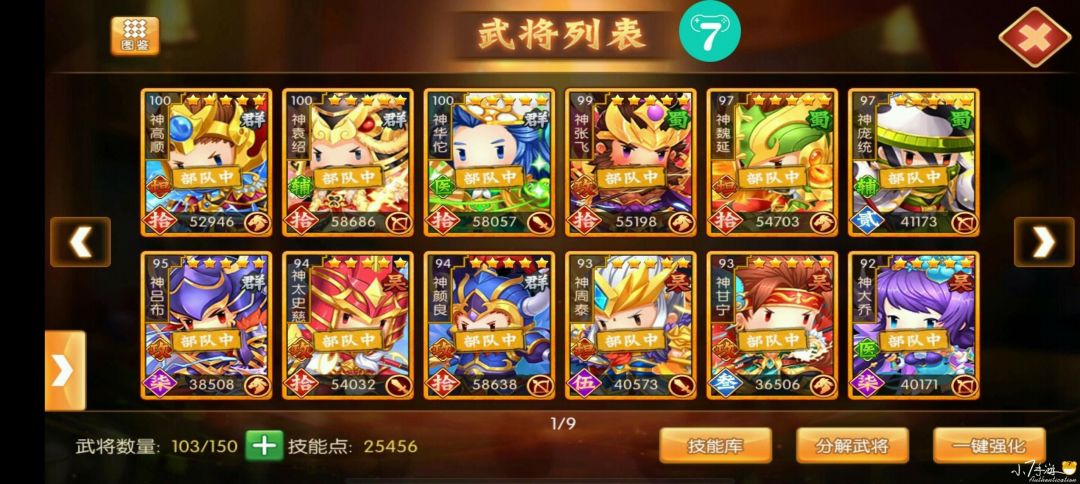 这队强化高了也能打50级地,还不错,当然其中每个将都可以与其他的搭配。