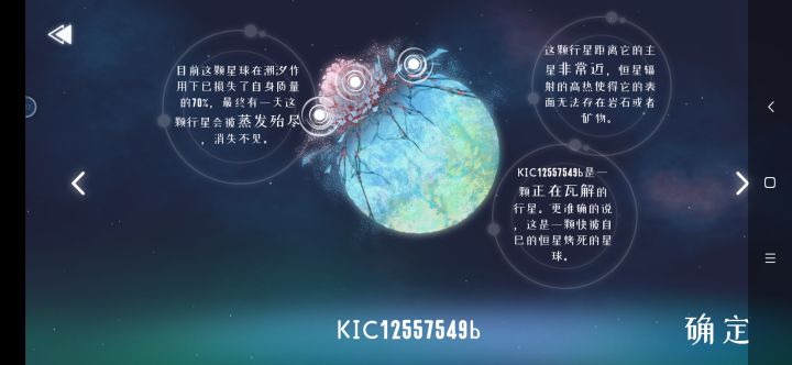游戏的整体风格是偏向卡通插画的手绘风,整体的色彩饱和度虽然较低,但并不会感觉十分冰冷,相反的是会有宁静和遥远的感觉,进入游戏当中来,画面虽然简单但是各有特色,无论是飞舞的陨石,还是星球上绽开的“焰火”都是美的体现,我尤其喜欢KIC12557549b这颗星球,像极了一朵花绽放在星球之上,美不胜收。