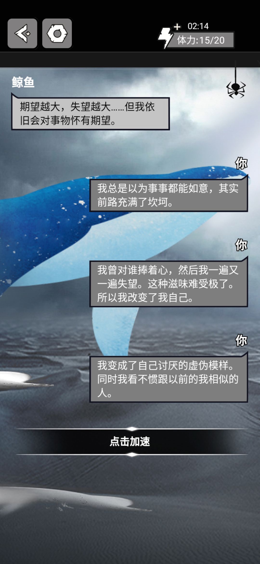 有人说作者的题太过明显,可能我比较愚笨,玩了两次才明白自己是“守门人”,基于本心的选择第一次就得到了“无伤”结局;目前为止“问答”与“梅比乌斯”是我比较喜欢的,有值得思考的地方,个人认为可玩性还行,闲暇时间可以玩玩
