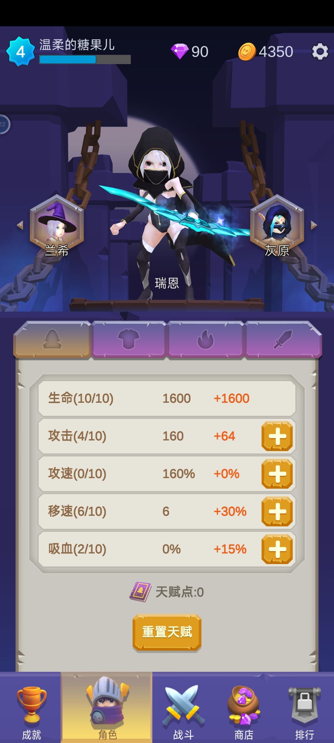 到3级大概也是完成两个成就,500怪和3级成就加在一起有4天赋点和5万金币,天赋直接全点生命,局内也是跟上面说的一样。