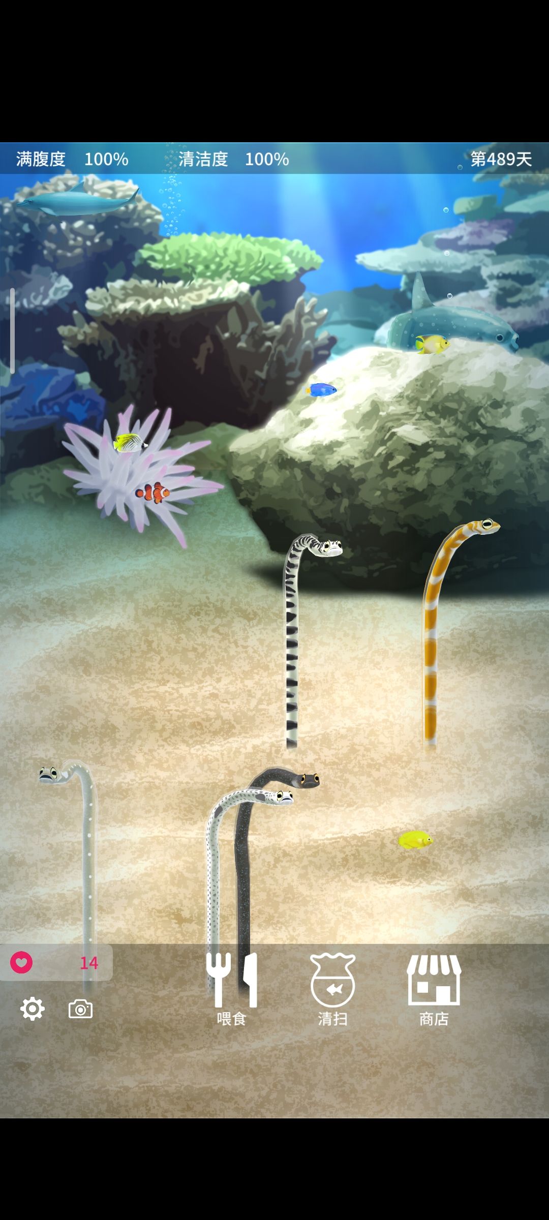 (小声bb 搭配同类型的养成水母 也不错 要注意只有一只 忘记换水或喂食只能重新养了天数也没了 (别问 问就是我的已经13周目了)