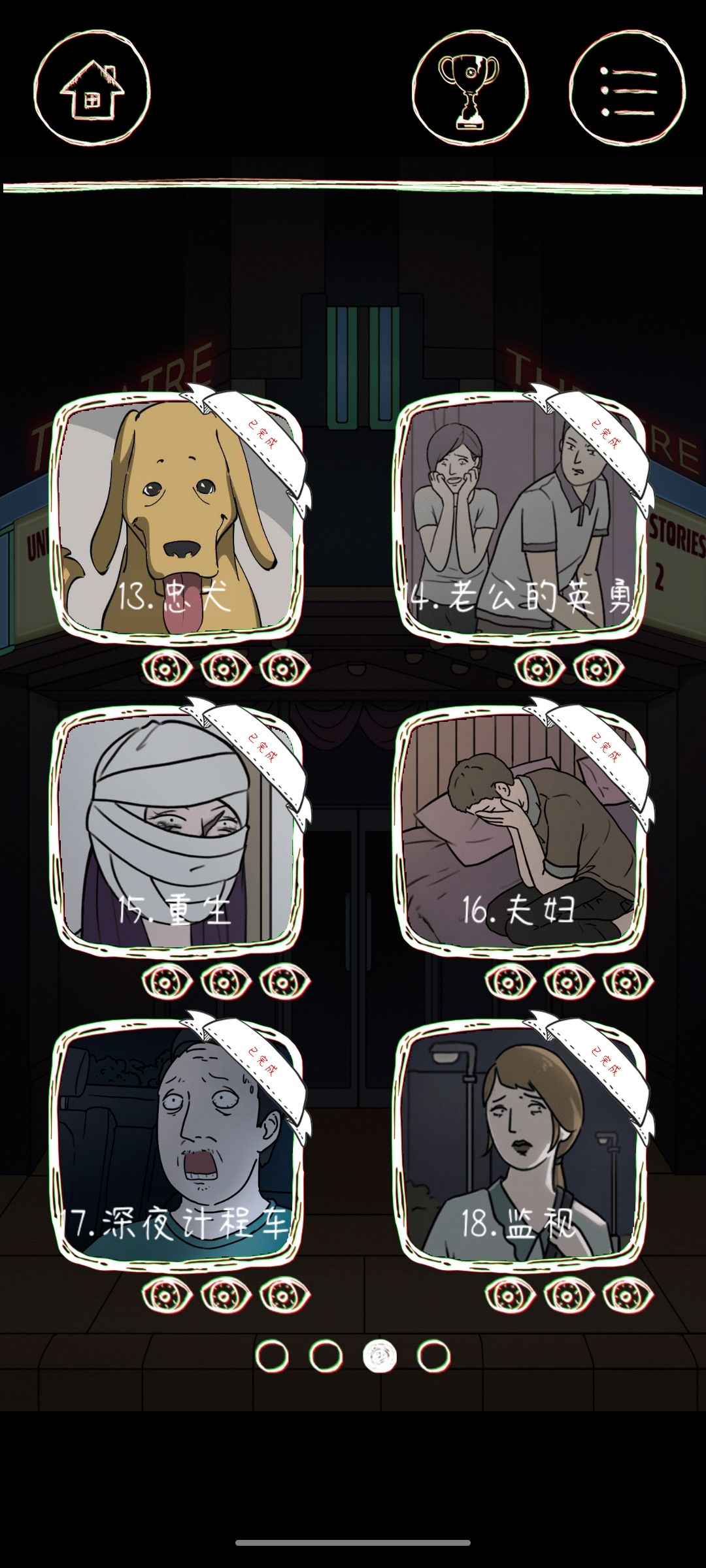 全关全成就达成,玩了大概一个多小时左右,挺好玩的,就是有点恐怖,会触发小的恐怖点,广告不强制,解密也不是很难,就是有时候顺序挺重要的,要注意一下。四张图片只能传三张,哎。有的关已经不是细思极恐了,就是真的恐怖,音乐很应景,期待下一部😆