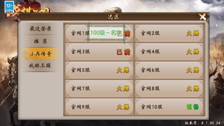 建议在选择小区的界面标注等级和游戏名字,比如小兵服1-9是一个大区,玩家不一定创建9个账号来养大号,可能在一个账号上在这9个区都创建角色,这样在选择服区的标注等级和名字可以容易查找