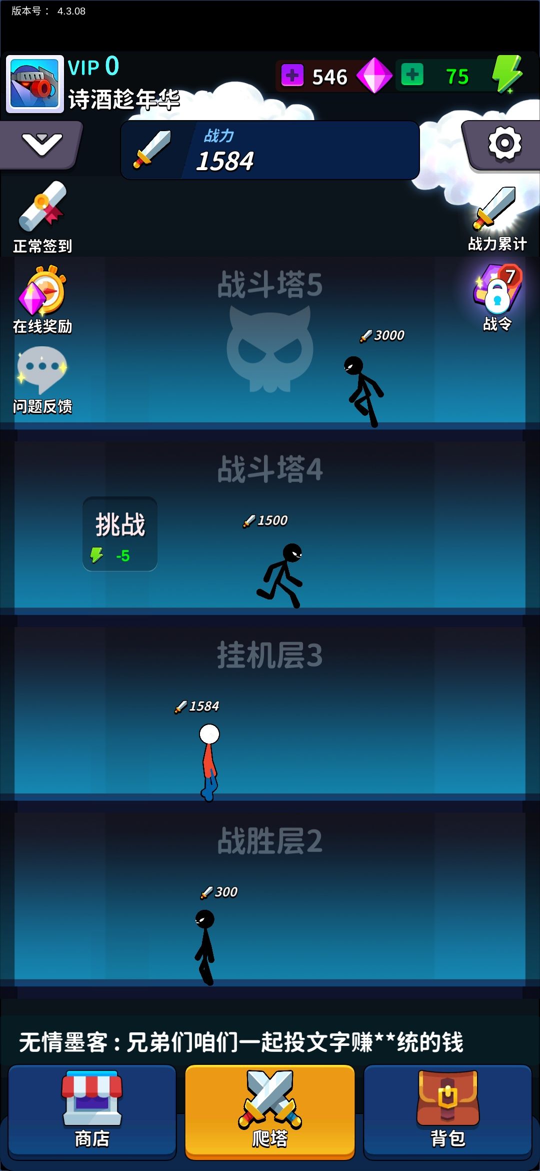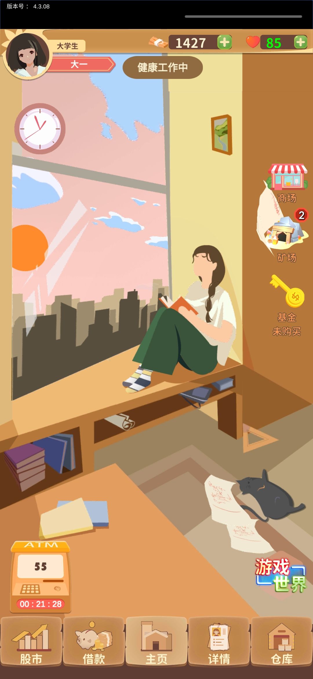 看到是tap独家的游戏,又是测试服,赶紧下载了,居然进游戏还得排队😂所幸等待时间并不长😃进去以后居然是一个以前见过的爬塔游戏的画面,稍微有点失望😔不过还没有玩过爬塔游戏,就趁机体验一下吧,不知道是不是爬到一定层数还能领💰了😍,嘿嘿😈玩了几分钟发现原来不是领钱,而是可以一步步地解锁新的游戏内容和场景,爬到5层就能有现实世界啦,还有职业可以选择,股票基金可以炒买,类似现实里面的从业抉择等等,有点意思,决定趁着闲暇之余好好探索一下,看能不能玩出不一样的人生😋