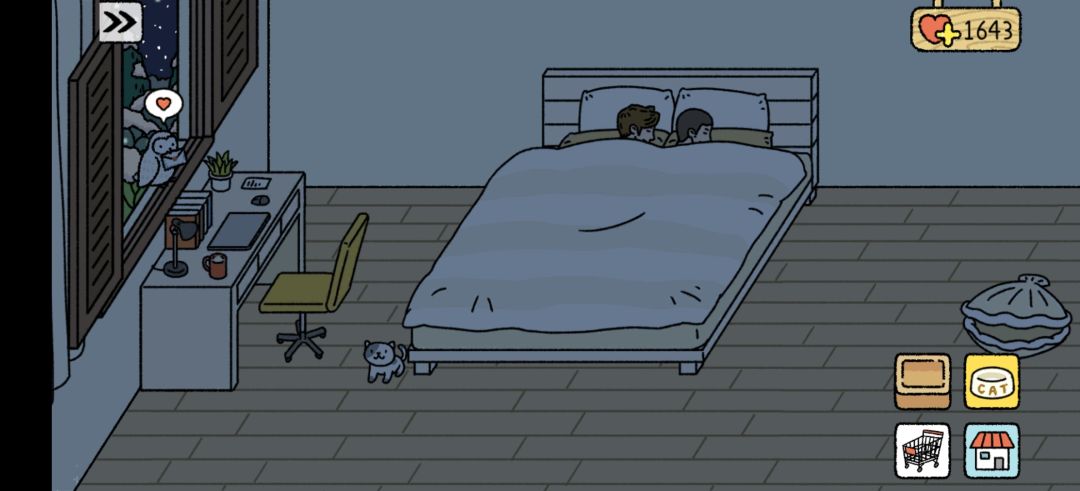 真的很喜欢这个慢悠悠的调子,小猫会时不时的跑到其他地方去了,主人可以在家等待另一半!我真的很喜欢细水长流的感情,有小动物从花园的洞洞里钻进来,还知道躲雨(哈哈哈哈)更多的就是每天上线总会惊喜在等着我~
