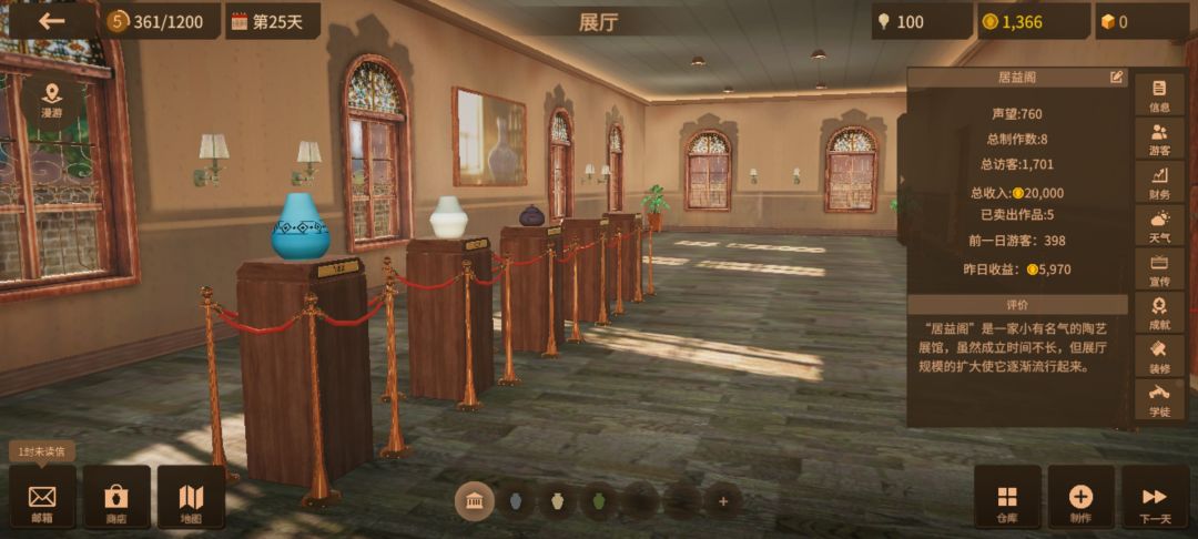曾有幸去陶泥馆,一抔黄土手中挽;先变花瓶后变碗,变化腾挪暗称罕。陶器制作分四段,成形上色要烤干;十日过后如所盼,出窑晶莹似月圆。执笔上色表面焕,泥罐旧貌改新颜;成品取回甚欣欢,桌上插花弃旧伴。现我游出手机端,似对前忆声声唤:制作过程高还原,模拟经营玩不厌;材料色彩都很全,创作环境可自选;收徒很有成就感,虽说拙作难置言…建议能逛别家院,交易往来是美谈;最好开设古董圈,上佳作品万户传。十二买断绝对赚,建议人手来一款;父母可能也喜欢,促进感情金难换!