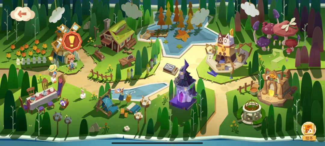 游戏的美术效果有部分是值得点赞的,其一是游戏的整体CG动画上真的不错,如同动漫一样的动画水准向我们展现了猫咪公寓的温馨和浪漫,小猫在庭院自由的奔跑,住客们在公寓里惬意闲聊,但从动画就足够的让人向往,而进入剧情模式,绘本一样的大地图让人眼前一亮,带有剪纸书效果的书页每一次翻页都带来新奇的感受,立体书、剪纸、折纸所带来的的手工技艺元素的融合,打造了童话般的游戏舞台,可爱温暖的画风非常契合游戏休闲的主题。