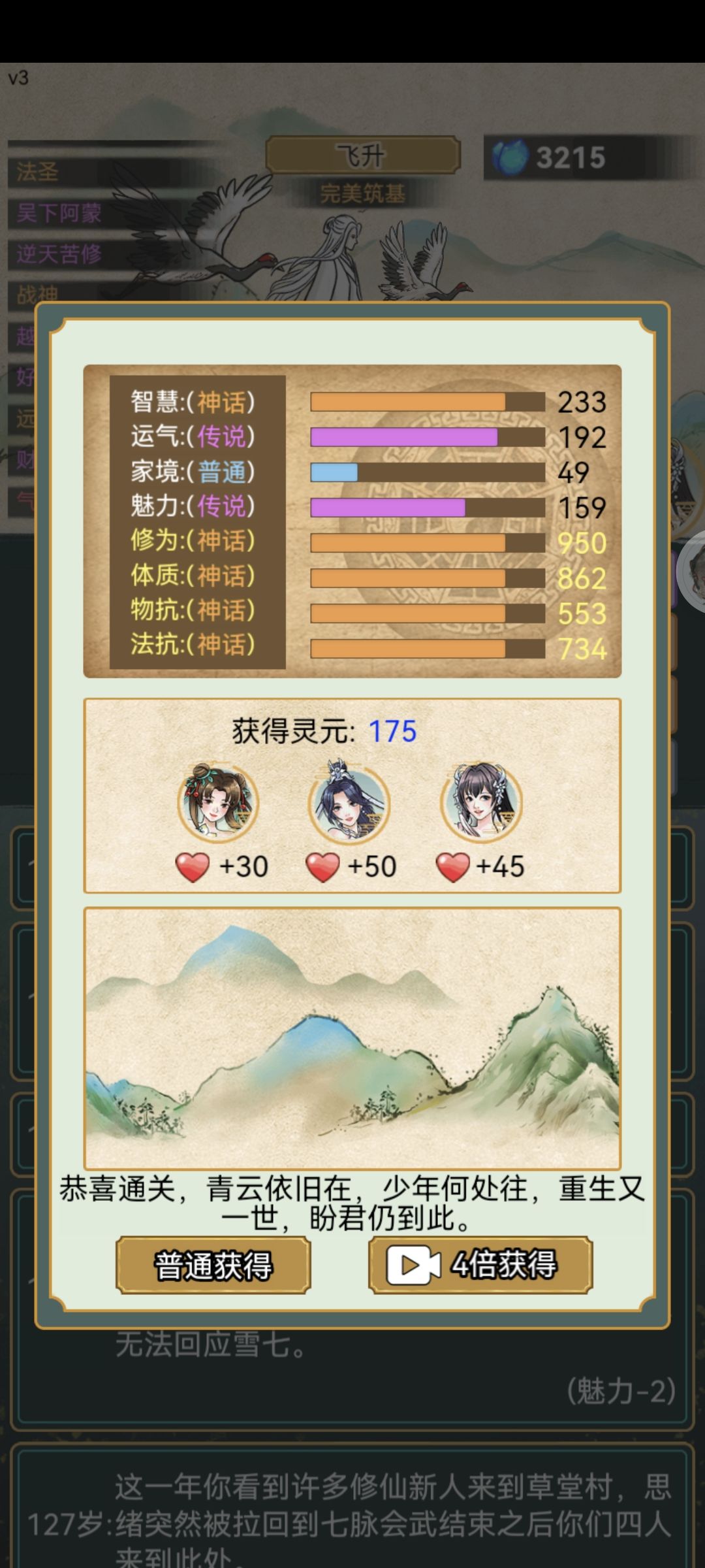 挺简单的,创意不错,就是前期有好几次战斗有点太难了,基本都是失败,虽然不会死。。然后家境好像会影响钱吧,反正我特别穷特别穷,好多次买不起法宝和丹药