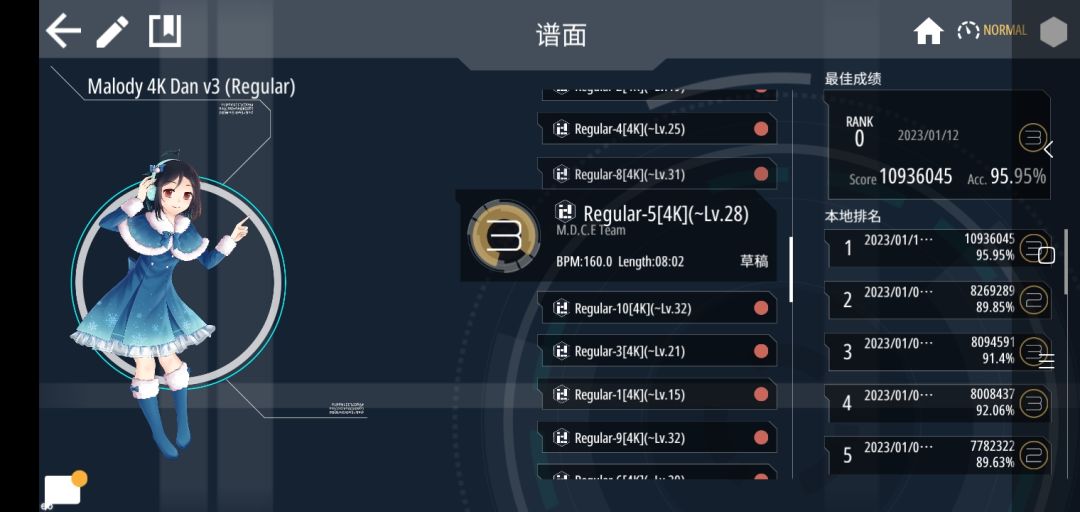 玩了一个半月,也是爬到了5dan,浅评一下malody吧1.可玩性:神中神,你能玩到近乎所有歌曲(前提是你的实力够格,不然会被薄纱)2.自由度:自由度无可挑剔,你能在国际频道上与外国友人聊天,也能在国内频道聊。自定义房间,与其他音游狗pk。六种玩法(包括定轨,无轨,太鼓,接水滴等)任你挑选自定义皮肤。3.服务器质量:不太行,土豆服务器4.上限:无限