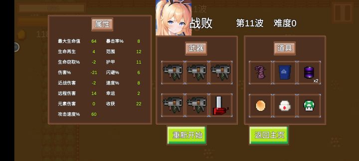 Bug真多 有一把拿了6弹弓下一波人物不会攻击 时间结束东西自动吸取根本就没有 生命回复没见回过血 0难度都这么难的吗