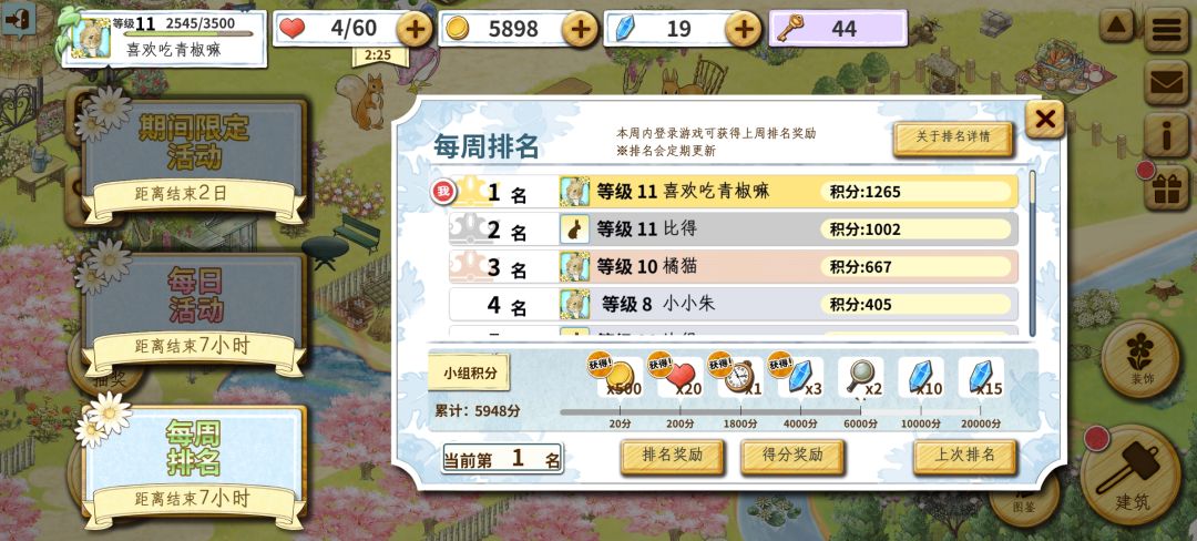很可爱的游戏,bgm很温柔舒缓。玩法和小学我们买的绘本里找图案差不多,慢慢升级建筑解锁新人物很适合心慢下来玩儿。停服了真的很可惜...截图找不到多少了,我也肝过第一,之前的第一2000多真的好厉害。我很喜欢这个小老头狗狗,他的图也很舒服。感谢陪伴,至少提天气阴郁时我打开游戏,游戏的bgm就已经治愈了我,就是很可惜我一直没有找到bgm的名字。