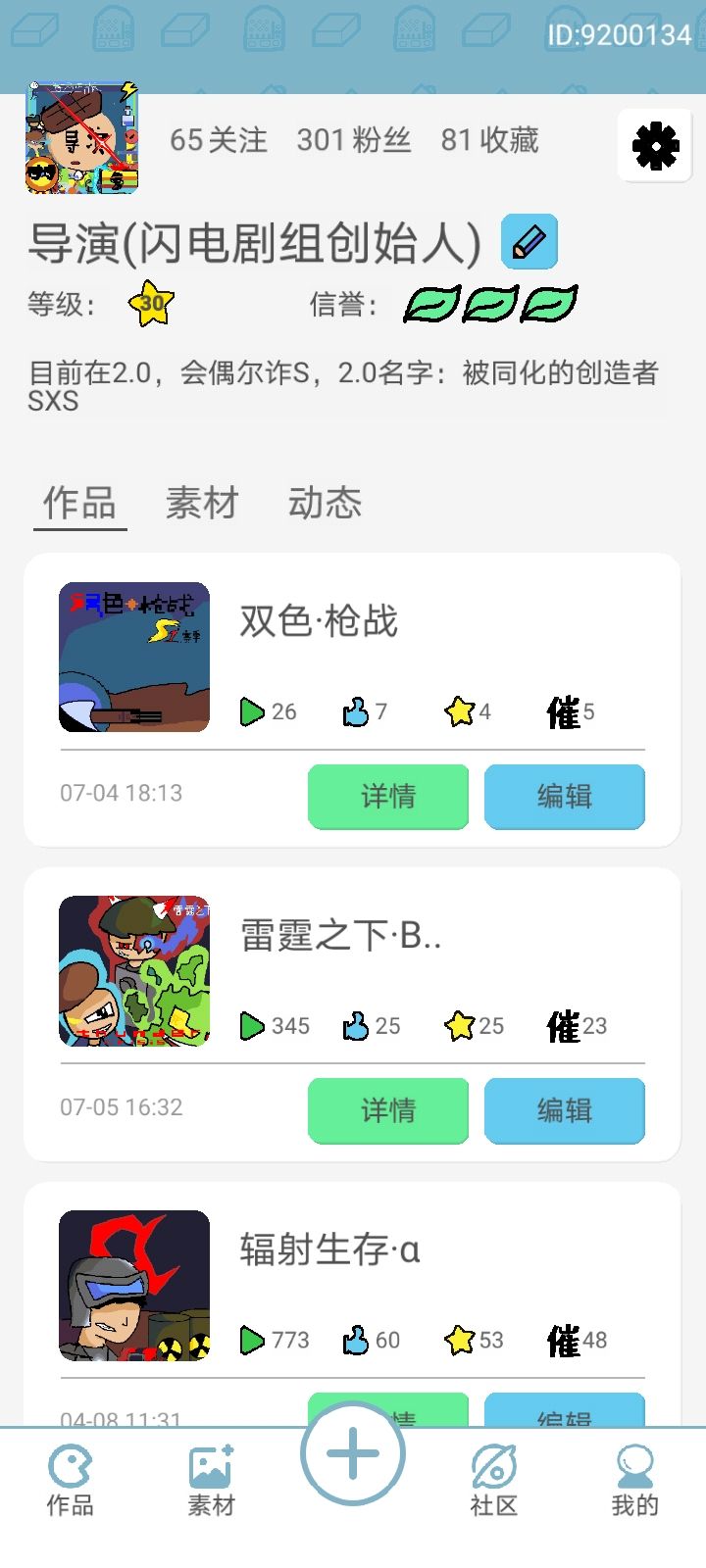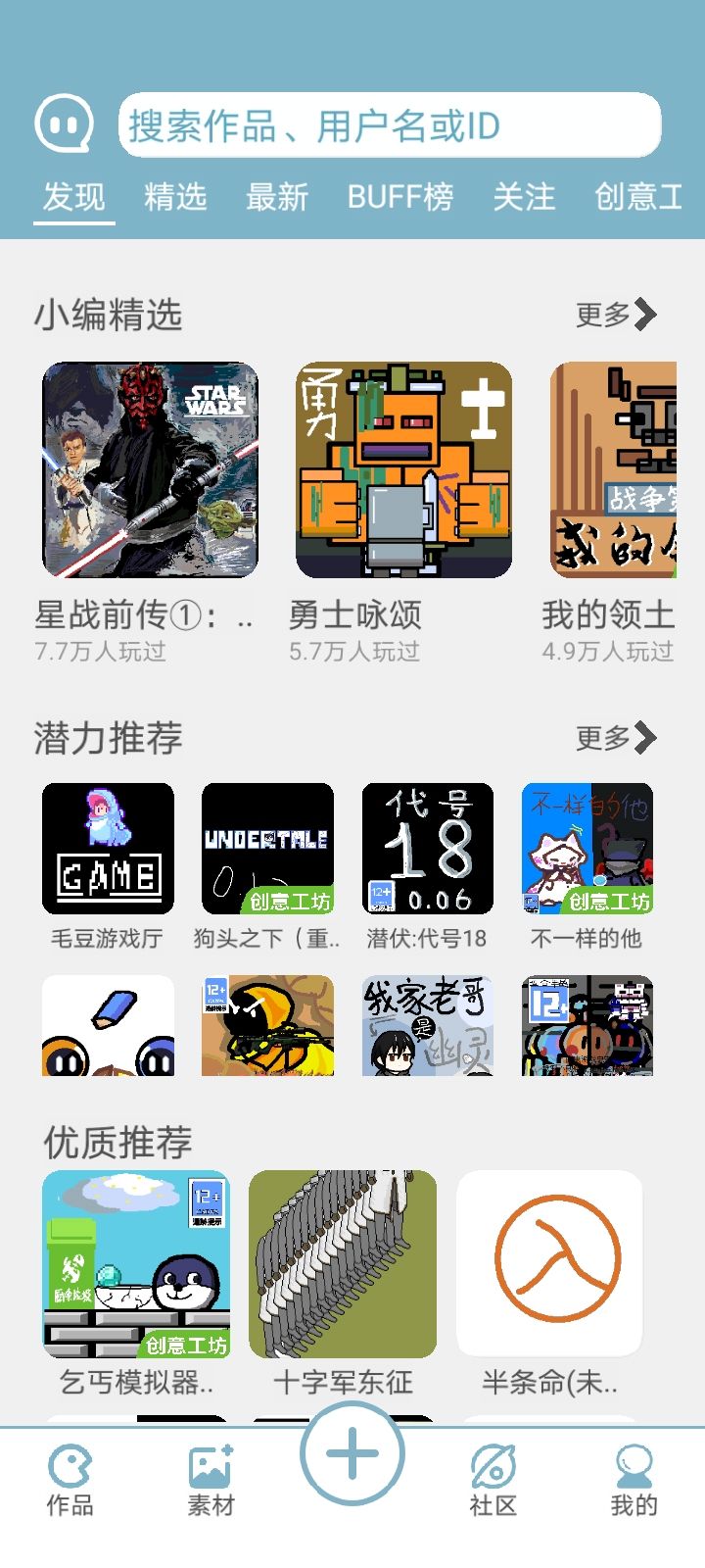 毕竟是玩了3年的游戏了(二零年的时候接触,一直玩到了现在),五星是一定要给的。可惜他现在已经下架了,也没有多少人知道,虽然说他的2.0版本也不错,但毕竟没有刚玩时的乐趣,虽然这个游戏有一些缺点,但随随便便做个游戏,让平台的人游玩,这种成就感是很少有的。有时候,玩的人多了,给自己的账号升升等级,也是很有成就感。当你从最开始的一级萌新,到了99级大佬,甚至是进入了官方的内测群,这种感觉是其他游戏不能带来的,仅仅是最简单的绘画还有脚本,便可以制作出来一个游戏来。与其说是一个制作游戏的软件,不如说是集合各APP优点于一身的平台