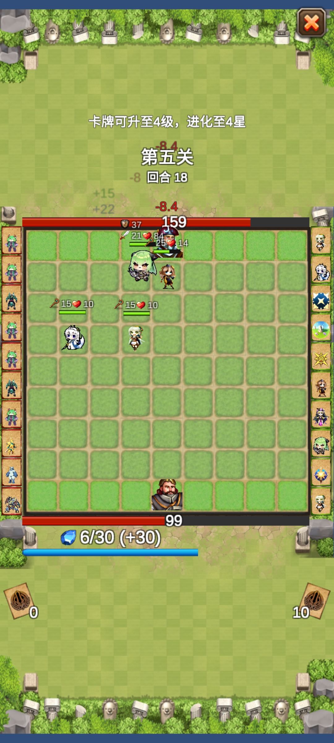 看起来挺简单的一个游戏,没想到玩起来却有点上头,前两关变化不大差点放弃了,第三关开始有点意思,第四第五关的Boss战有了策略感觉,前面回合主要就是进化升级,有了高级兵种打起来才爽,几个进化后的兵围着Boss打最过瘾,第四关进化出了铁骑战士和冰忍法师,第五关进化了凶猛战士和圣坛牧师,其实我想要凶猛战士、冰忍法师和圣坛牧师的组合,可惜没拿到。还有就是为啥只有五关?刚刚玩的起劲后面却没有了,开发组你倒是多做几关哪。再说一下画面,有点太简单了,虽然我不是很介意,但还是希望后面能优化。