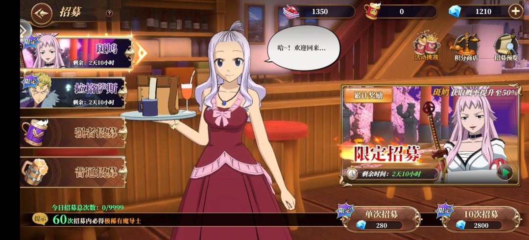 ③ 招募抽卡爆率有点奇特,新手会有一段光环抽奖期,会给你出几个橙,过了爆率就低了。这也算它个优点叭,至少给你快速出货,不知道公测了会不会调整。对了,还有一点!抽卡的场景是图3,米拉珍给你招募伙伴😉 上述加1星。