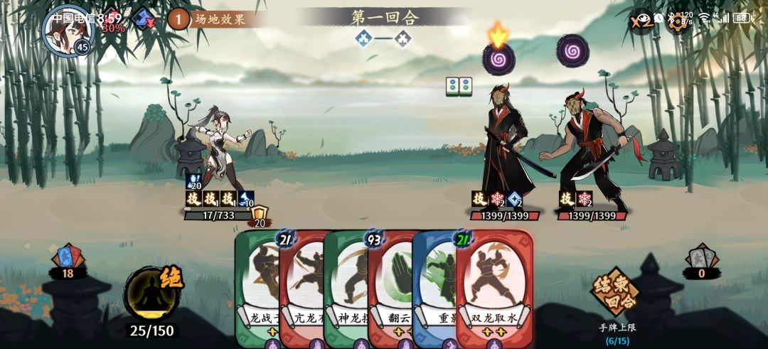 全程 -30∽50,后手开局。基本上进场就剩点血皮。有两张格挡的橙色轻功贼好用