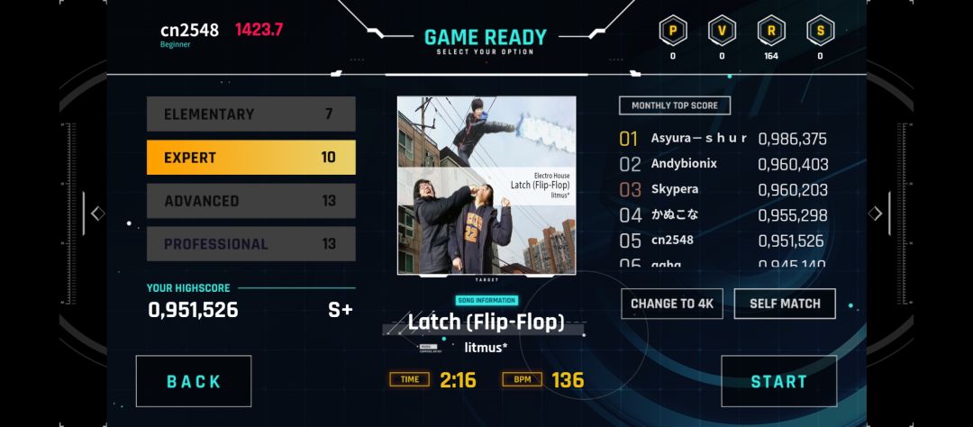 定轨音游,肯定不如Phi那样灵活,而且大多都是6K,不过游戏在后期考虑到6K对于新手不友好,又出了个4K模式(不过4K的难度也不低)。
