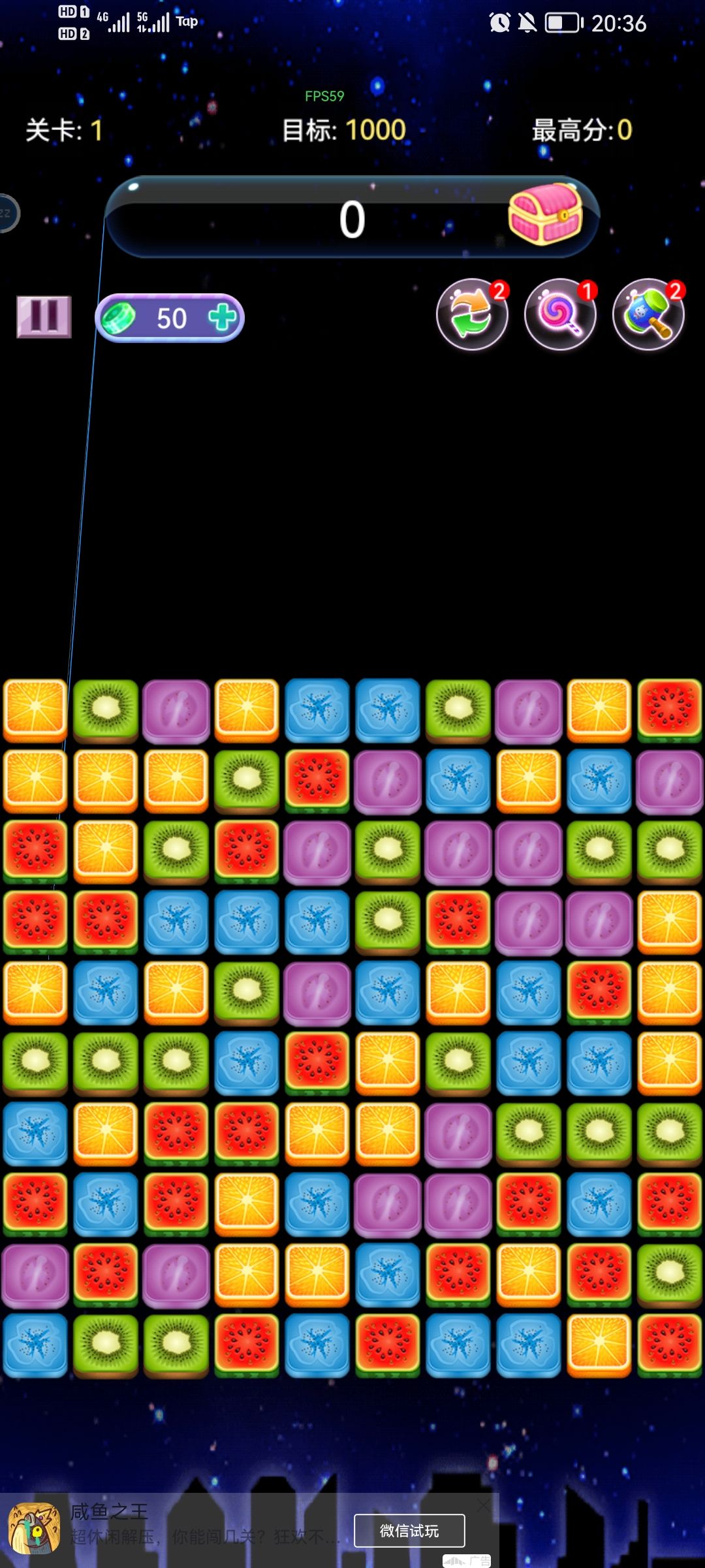 🆕创新性:经典消消乐,哪里相同点哪里~没啥太大的特色🎮可玩性:前期点点点就完事了,后期可能需要道具关键性的使用。喜欢消除游戏的可以试试。注意别误碰广告。🌃画面音乐:游戏界面底部常驻广告,白嫖糖果需要广告,签到双倍道具需要广告,背景音乐整体都还行,但是消除的点击音效很像麻雀声~😂🔖运营服务:有时候提升自己的游戏品质,比光想着怎么让玩家点广告更有意思。天下苦广告游戏久矣~溜了溜了。😅😅😅