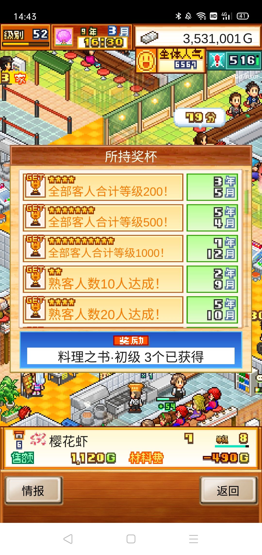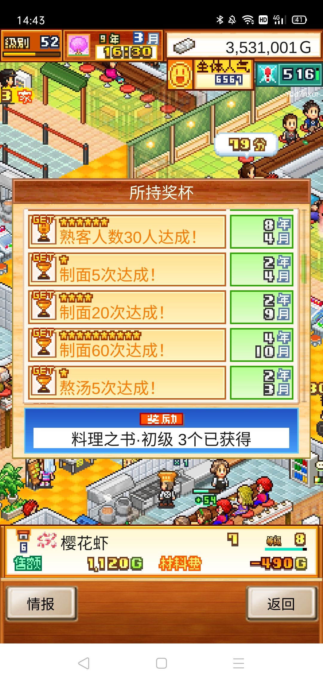 不足:到后期就有点无聊了,可能就是纯肝,内容比较单一。但是都后期了,要啥自行车。还有一点就是,厨师的厨艺在后期没有究极升级书的情况下很难升上去(而且有的用大师也升不上去),这样有些拉面难度高依旧只能放在仓库不能出售。那个降低难度的材料一个只能降一点点,玩成了数据游戏。还有就是那个角落里的图层复制建议官方修改一下,给人看的不舒服。