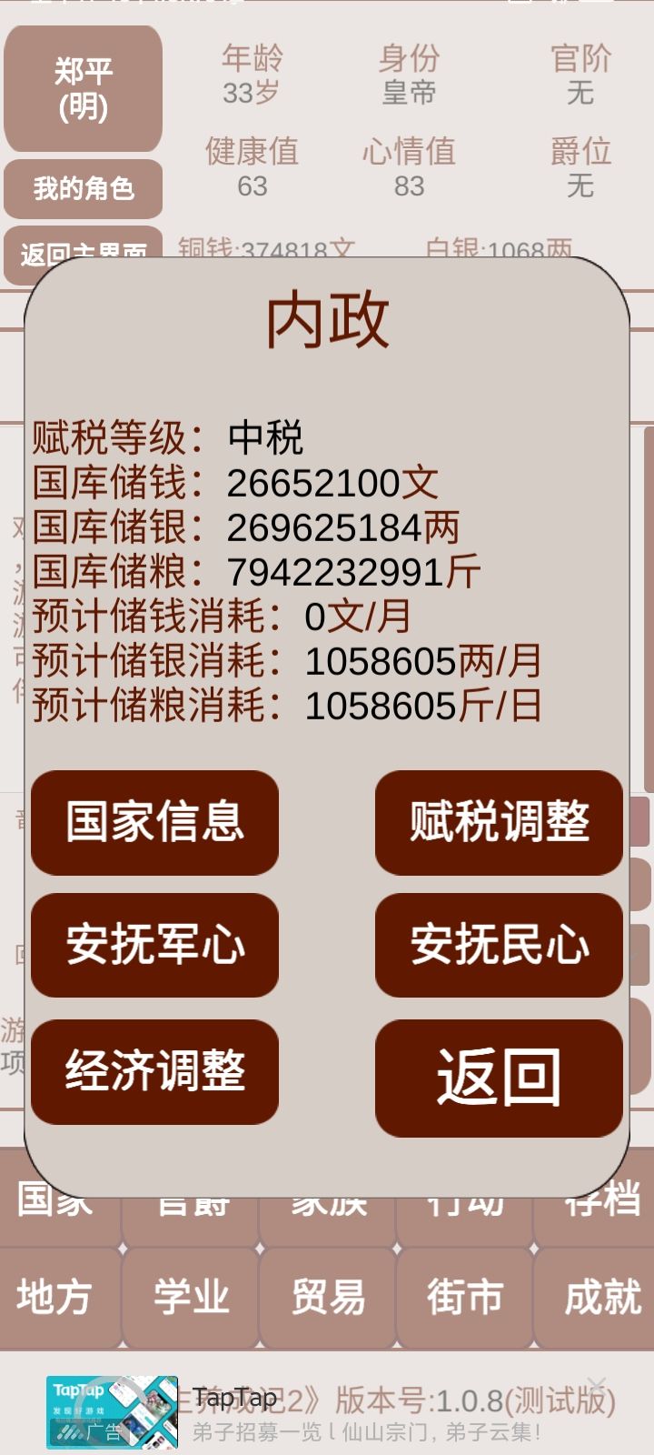 就是统一全国之后,玩法就比较单一了,每年上交的粮食和钱,根本用不完,希望加入一些战争之类的😁