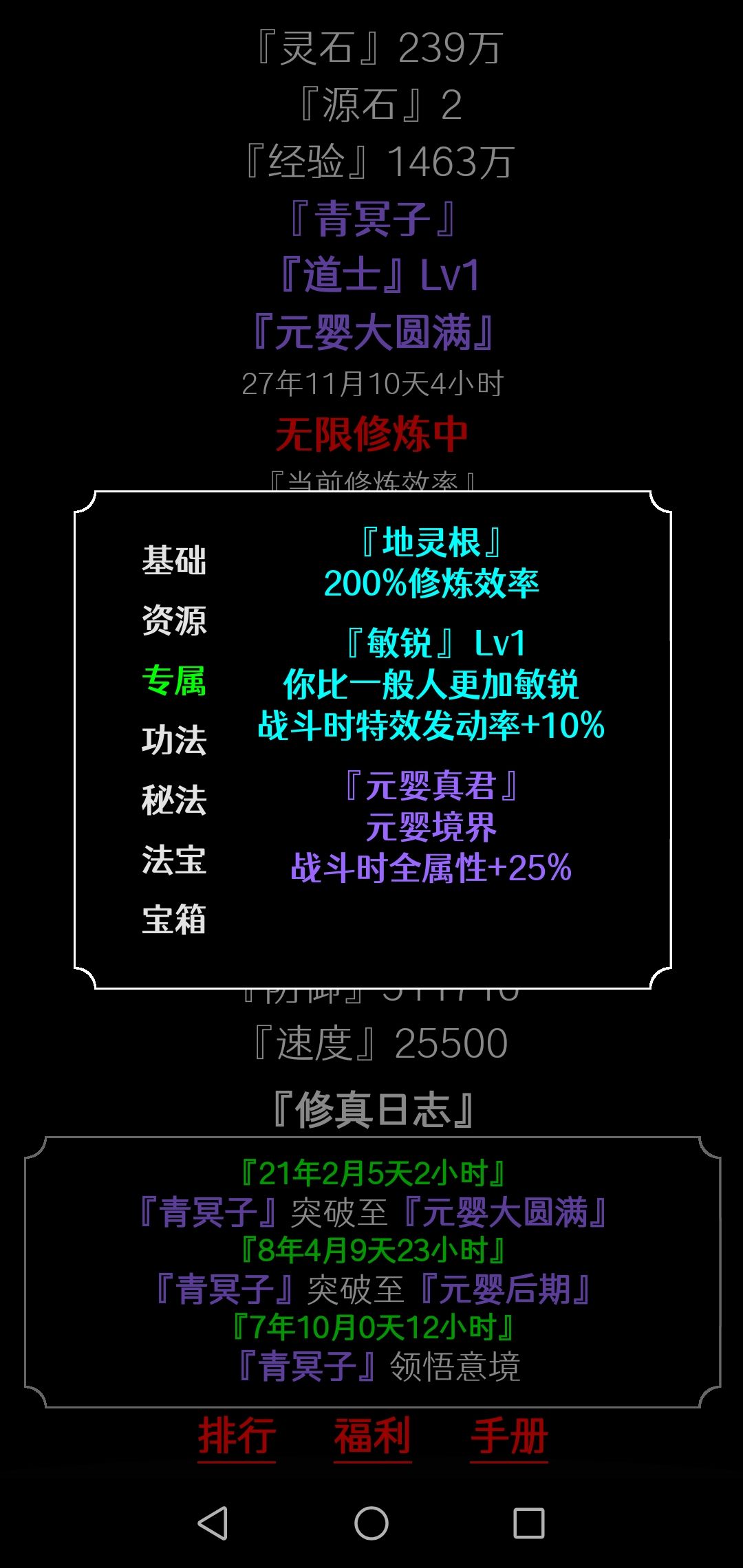 然后疯狂观想加属性道心最好能领悟意境,然后就是枯燥的打救世领灵石观想(突破到元婴可以把宝箱升到史诗)。