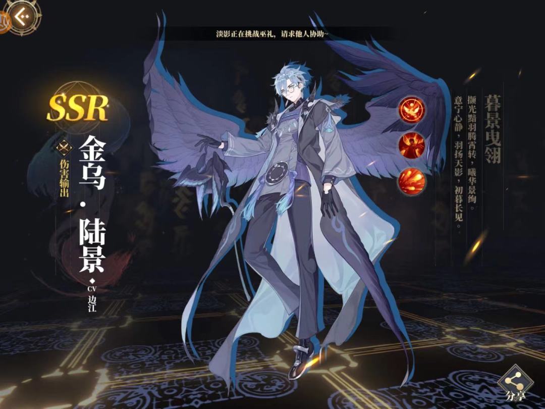 PS. 亲爱的,看在咱老玩家的份上,可以让金乌·陆景回来吗?或者好歹出成皮肤?男神变正太的冲击实在有点大