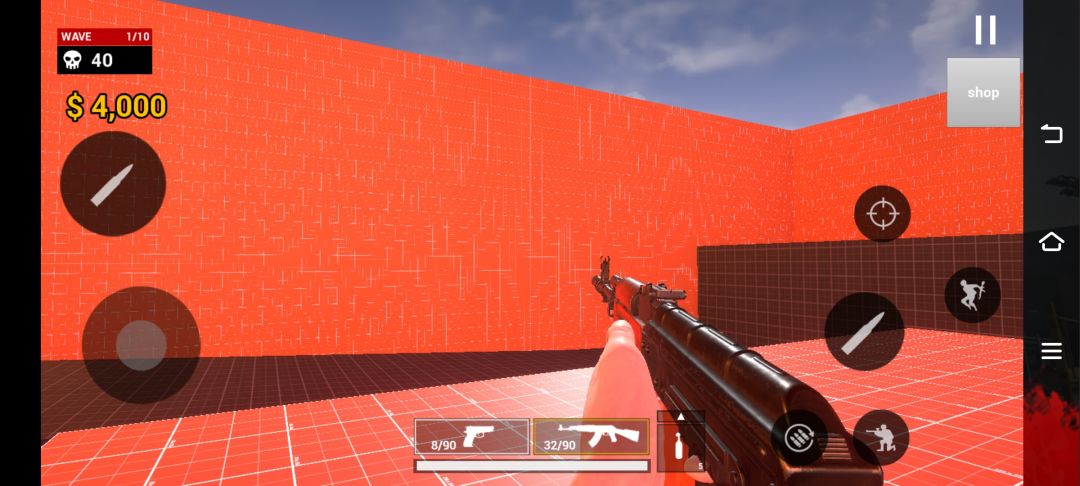 这是一个很简陋的射击游戏,内容就是用枪和手雷燃烧瓶杀死10波丧尸,杀死丧尸得到钱可以补给弹药,即游戏胜利