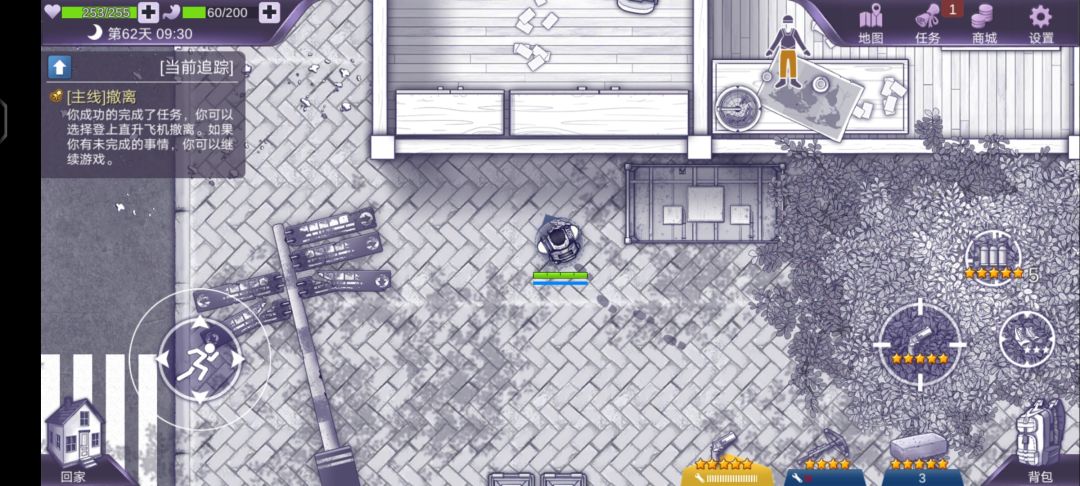 这又是东施效颦的一段内容,在《This War of Mine》中,本就是以真实历史萨拉热窝围城战为背景,各国纷争,叛乱的军队抢夺民宅驻扎安排是历史事实,游戏中加入是为了完善情景塑造,也是为了提供枪战玩法,而《阿瑞斯病毒》模仿内容不仅唐突塞入,甚至连文本解释都没有,在左下方还能再塞一个幸存者营地,若说前两个势力是以武力驻扎于此,那这几个小嘎三咋做到的?这种省钱敷衍的地图设计不是头一个了,难度上,一群丧尸的威胁还没几个拿弓弩的土匪和几只毒蜂高…