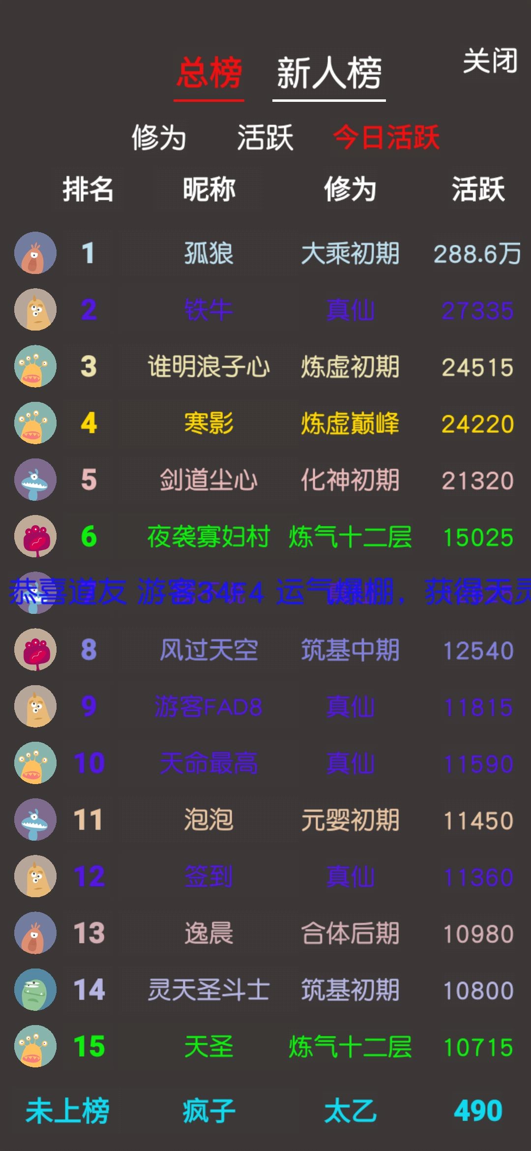 游戏很简单,元婴期开始什么都不缺。感悟都用不完。不克的话每天上线就不缺资源。我都是偶尔才上一下。良心游戏。只是不知道后面有没有更新。