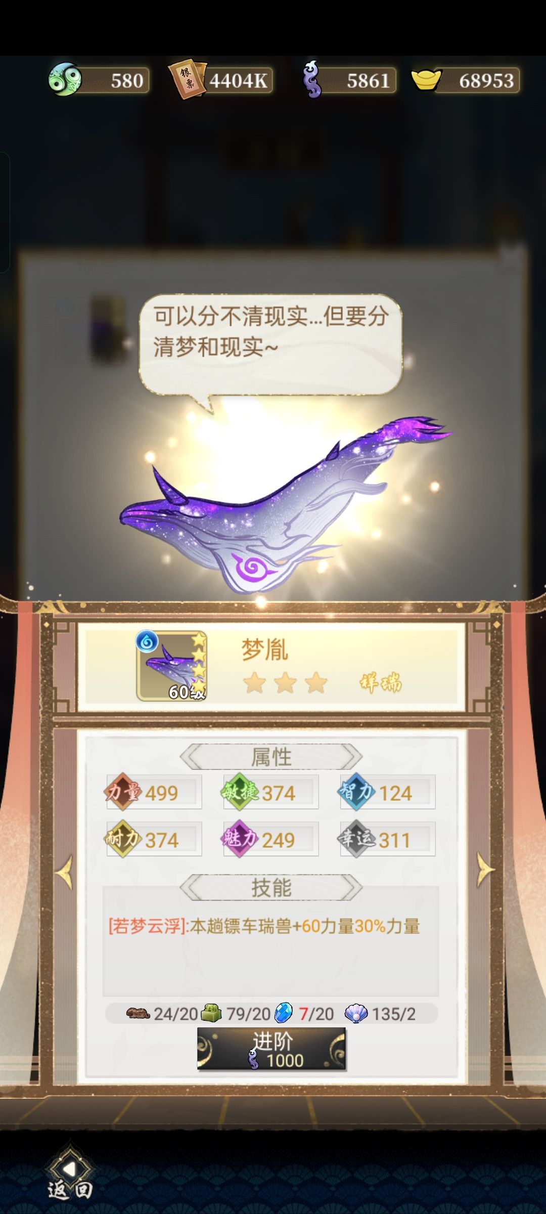 这款游戏开服就开始玩了,如果你和我一样喜欢国风 喜欢消除类游戏,那是非常值得推荐玩的。原来九游的号上不去了,停了一段时间 想想不舍得,在这儿一下还能玩,太开心了。我不太追求战力,就是当休闲游戏玩,背景音乐和画风都很戳我,喜欢打架的就研究战斗,像我种喜欢休闲的就玩小游戏,这个游戏特别好的一点就是,不用老想着追着谁赶着谁,然后还得看着时间去做任务。自己想怎么玩都行。抽卡爆率再高点就好了 虽然我不追求战力,但是每次抽到宗师还是很让人愉悦的。