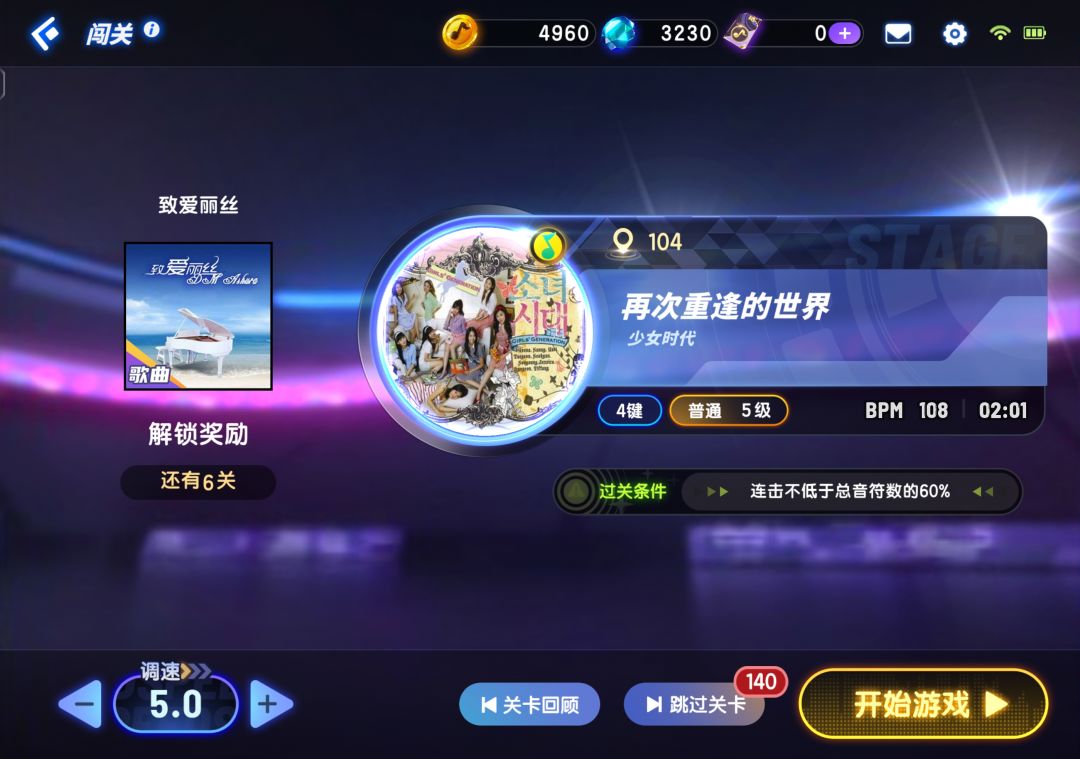 🎵曲库:歌变少了,歌全要闯关才能体验,包括五键六键也是,专辑倒是做的很棒,建议是专辑上的勤一些,让玩家知道官方还活着