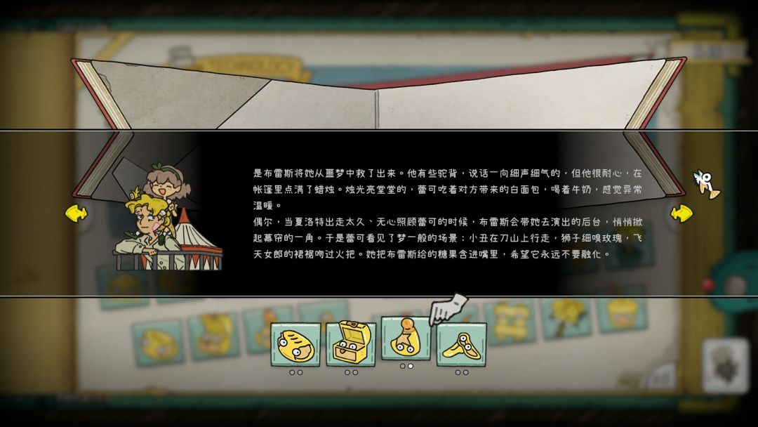 这部作品作为国产作游戏真的让我眼前一亮,其设定新奇玩法有趣,手绘画风精致好看,人物性格生动饱满,船上的每个人都很讨喜,拥有自己的喜好和想法,玩着玩着就像处于一个有血有肉的童话世界里一样。游戏的音效也做得十分细致,我总喜欢来来回回跑动,听鞋子踩在不同地面上“哒哒哒”的声音,觉得又可爱又解压。