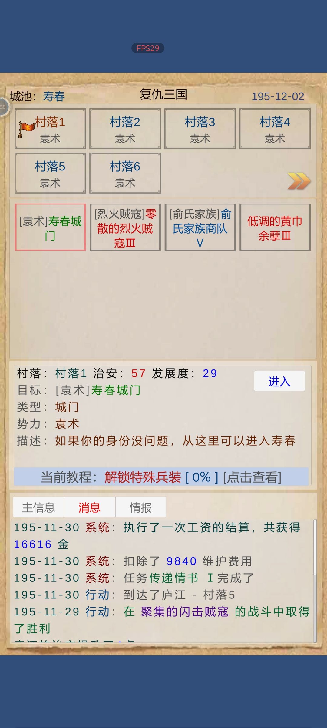 总共开了三次第一次懵懵懂懂把自己兵和将坑死,三个小队去打六级营地直接被秒,第二次玩的有点懂但怕进坑然后又创一个然后就玩成下面这样子比上一个号好,五级六级都可以打过只不过损失要重一些,有个小技巧让你不用太看重单兵价值就是在29.30时吧除了主角以外兵都归零不会扣兵响然后尽量收将派去工作这个收入搞基本不愁没金币用请看图三,将拉满后就是我不归零也不会破产,破产后会扣声望,前期运气真的号第一次打就刷出一个将82武直接起飞打盾一刀一个