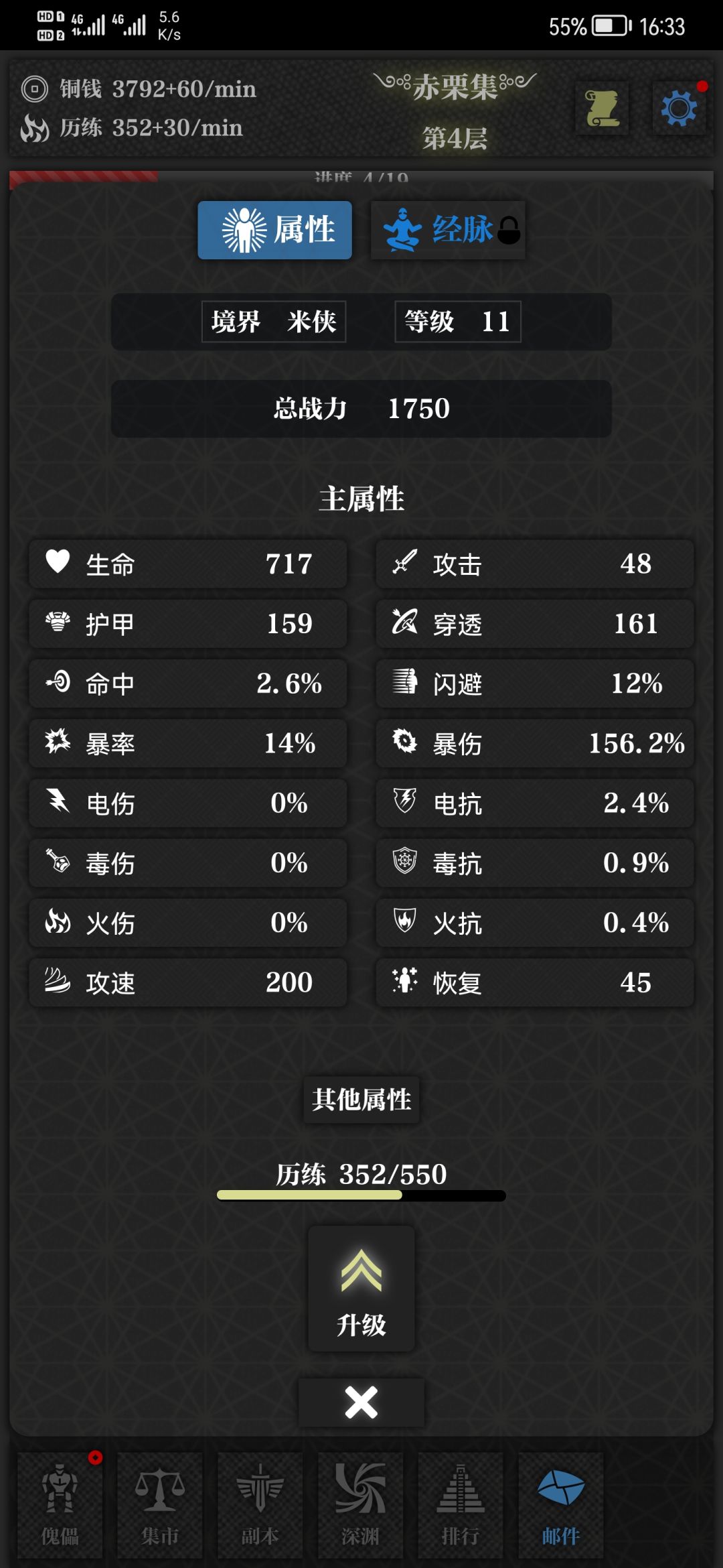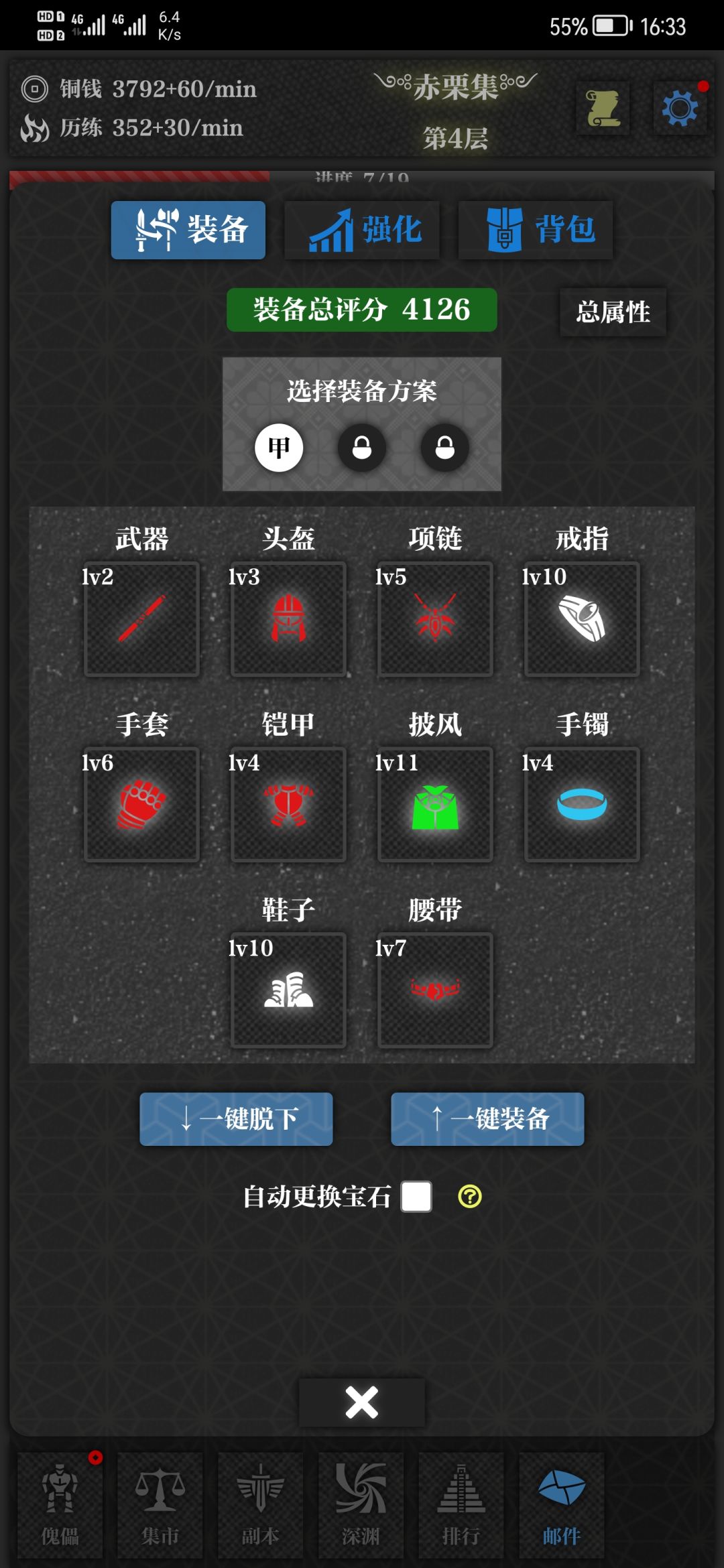 刚刚才玩这个游戏,装备的属性很多,主属性也很多种,组合起来的话可玩性非常的高,尤其是这个游戏的武功系统和门派系统都非常不错,最重要的一点就是没广告,完全就是玩游戏的感觉,不像之前全都在看广告去了,而且游戏界面也很简单,没有那么多花里胡哨的东西,总之刚刚才玩没多久,觉得还是可以的,应该会持续玩下去,加油。