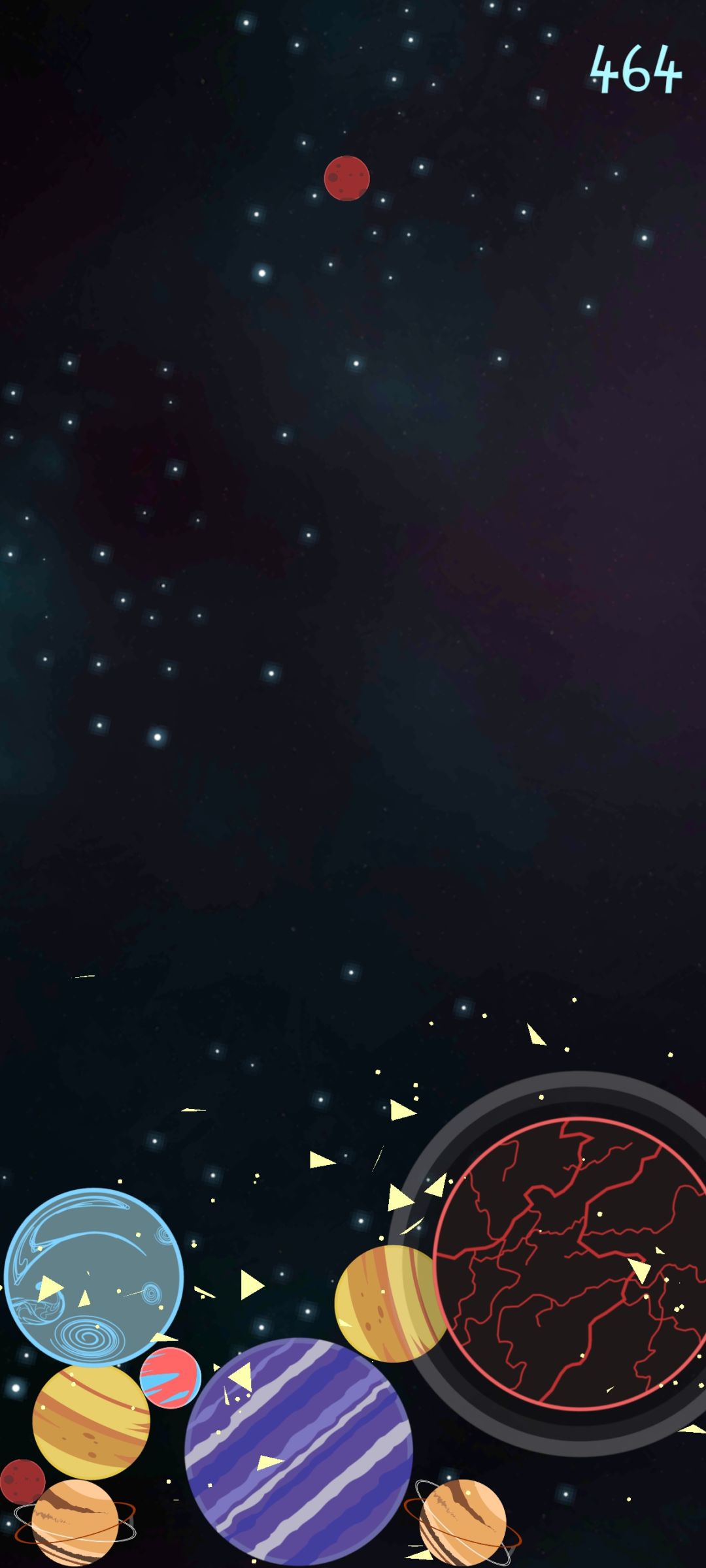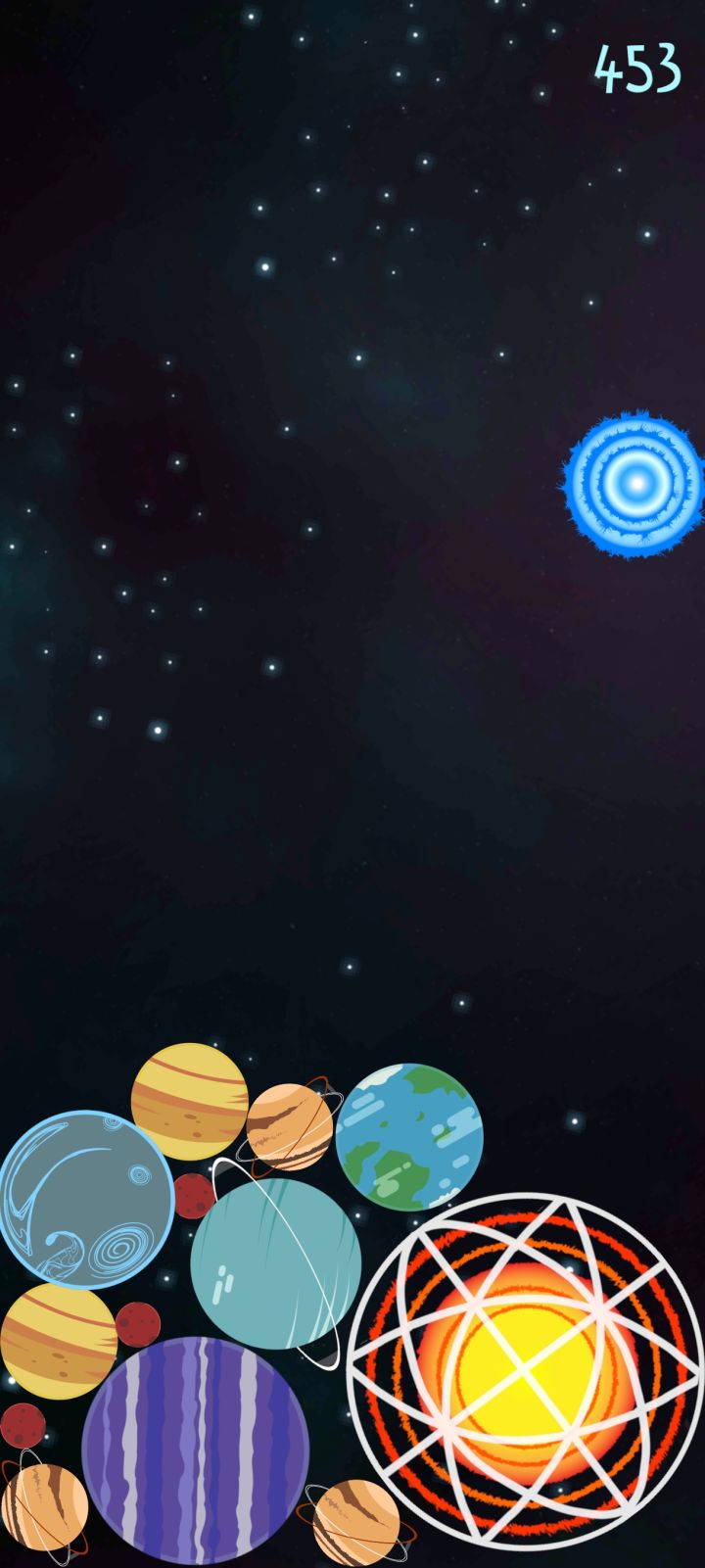 🎮可玩性:和其它合成类的游戏不一样的是,它在合成最大的球后还可以消除,这样做极大减少了空间,而且还有一个可以直接将任意星球直接提升一个合成等级的蓝色光团,难度也大大减少🪄耐玩度:总的来说,游戏难度不大,可玩性较高,可以玩很久💡游戏创意:十分具有特色