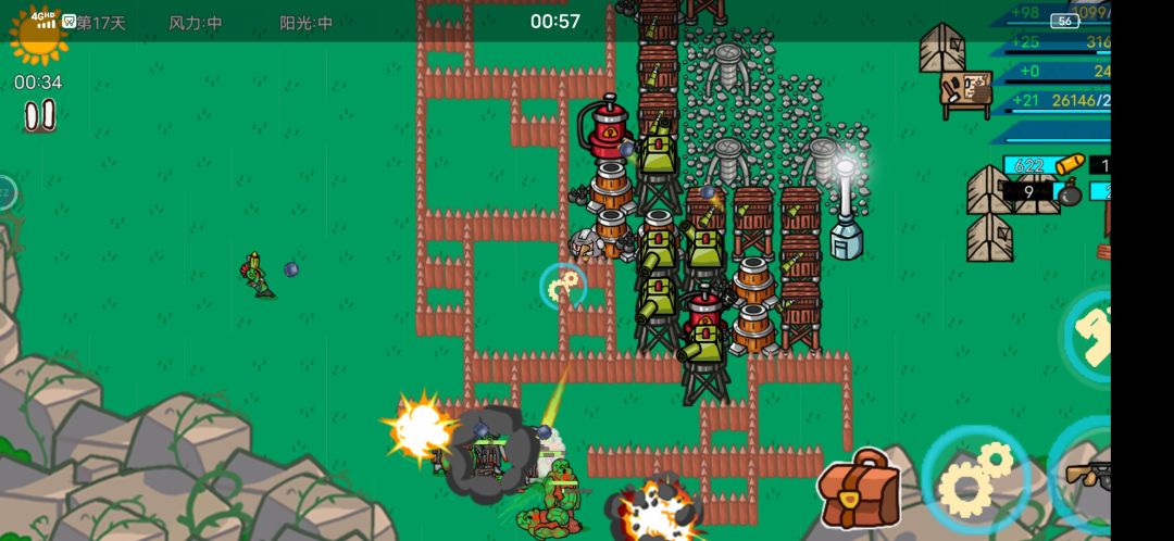 二,后续玩法太单调,说白了用来用去都是那几个建筑和武器,关键是虽然拥有升级塔的设定但是完全没时间搜集材料去升级,而且搜集速度很慢,给塔升级后也加不了什么属性,还不如多盖几座,简单地说除了迫害自己,没啥娱乐的地方。