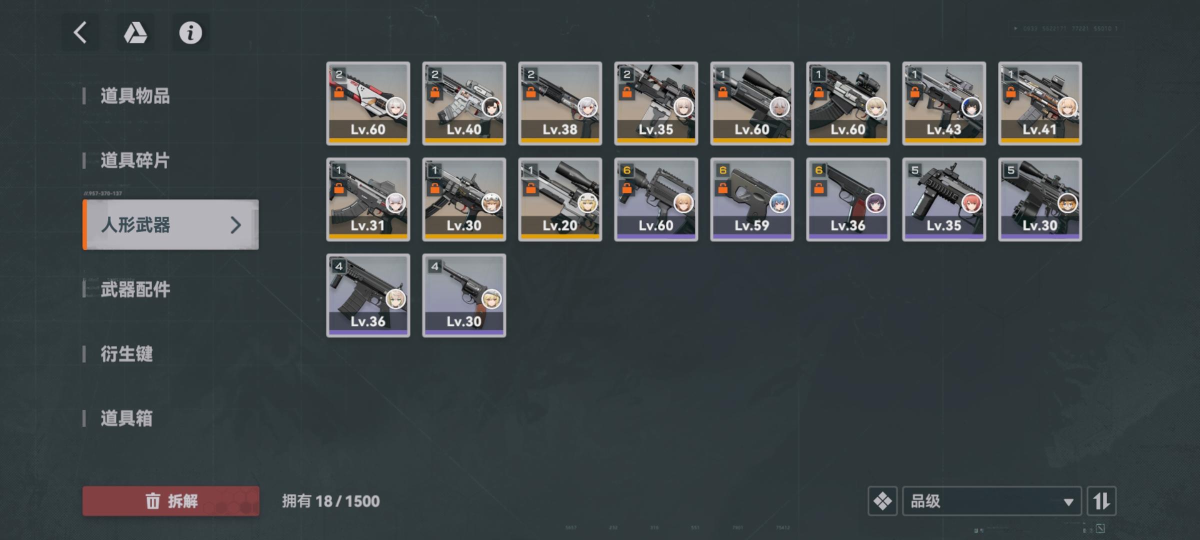 加一下分解配件的筛选,我现在好几百配件,我要分解的时候还得一个一个去找,体验极差