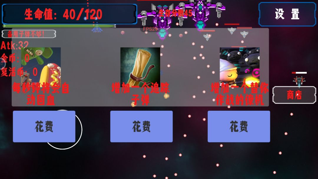 好玩,无脑选自动跟踪子弹.开局选20秒+5金币的那个,然后打boss会掉小宝箱,去接小宝箱,可以选技能,我推荐选跟踪子弹,然后点自动回血,一个自动回血是每秒回两滴.跟踪子弹.怪还在屏幕外直接打没,吃商店加成攻击和攻速加成.技能里面的撩机是没有碰撞的,不会阻碍本体移动,商店里面的撩机不要选阻碍本体移动。前期点攻击,三个金币+5点攻击非常划算,再点一个复活币,防止操作失误暴毙,然后点加生命上限,五金币50点上限,回血技能可以慢慢回满。小怪的伤害目前比较低,血量上去了直接撞不用管.现在我卡在了第一关黑洞那,黑洞有bug,直接把本体给吸走了,没有办法正常游戏.希望作者赶快改一下