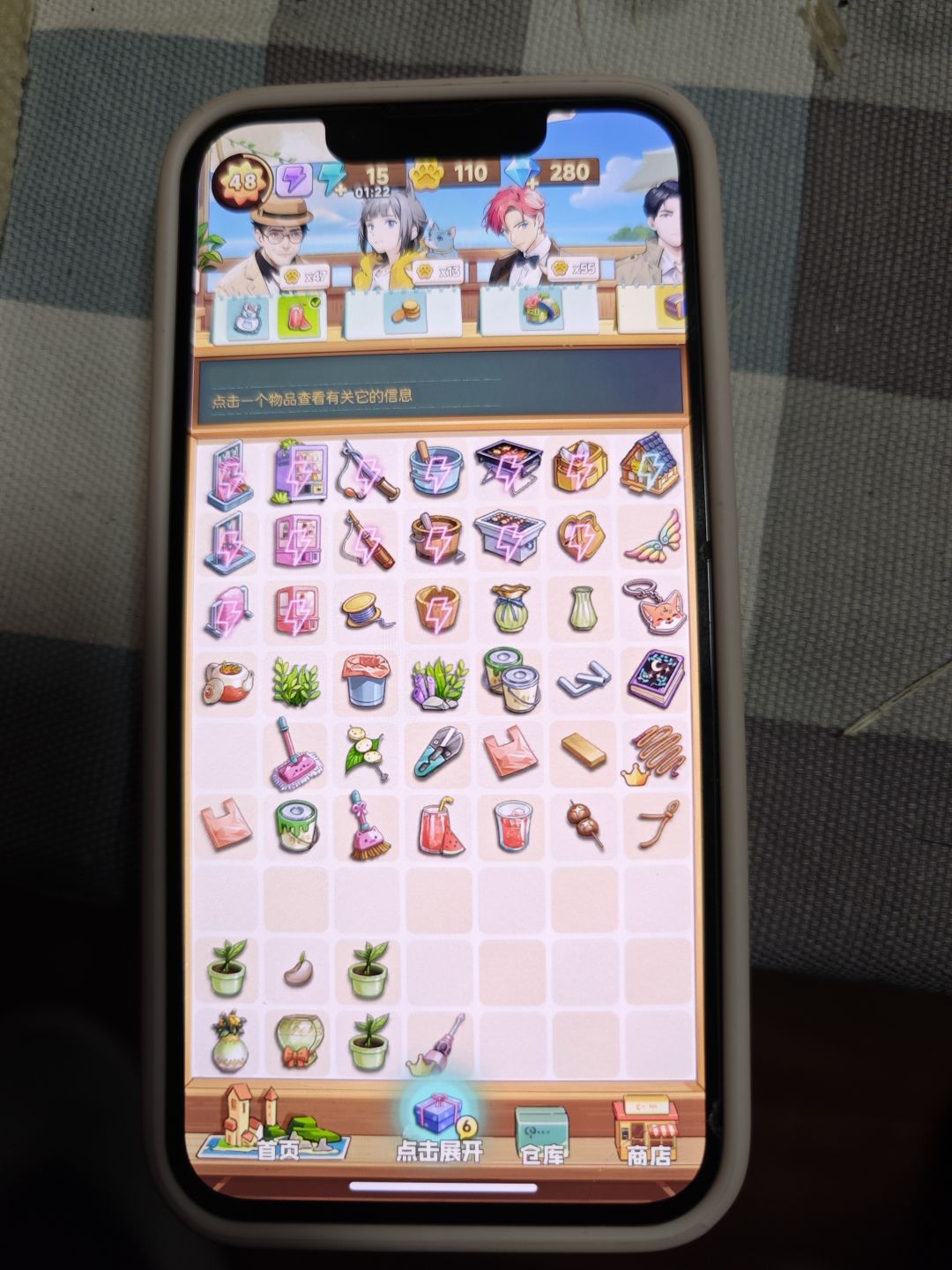 4、有仓库系统,但免费的只有五个,活动道具和生产道具占用合成格子,这就导致画面可能乱。