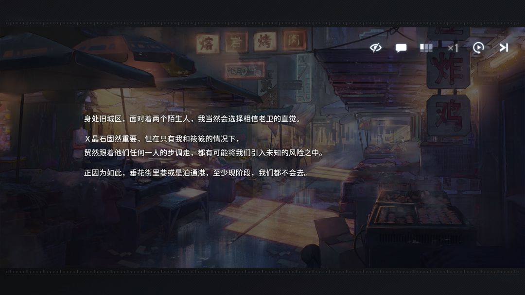 ①剧情界面有很多意义不明的按钮,自动、倍速、屏蔽对话、剧情回顾还有跳过虽然都是有必要的,但看着就是比较奇怪,还有剧情和倍速中间可以切换的按钮也不知道是什么功能,让玩家自己去猜去试未免太不友好。